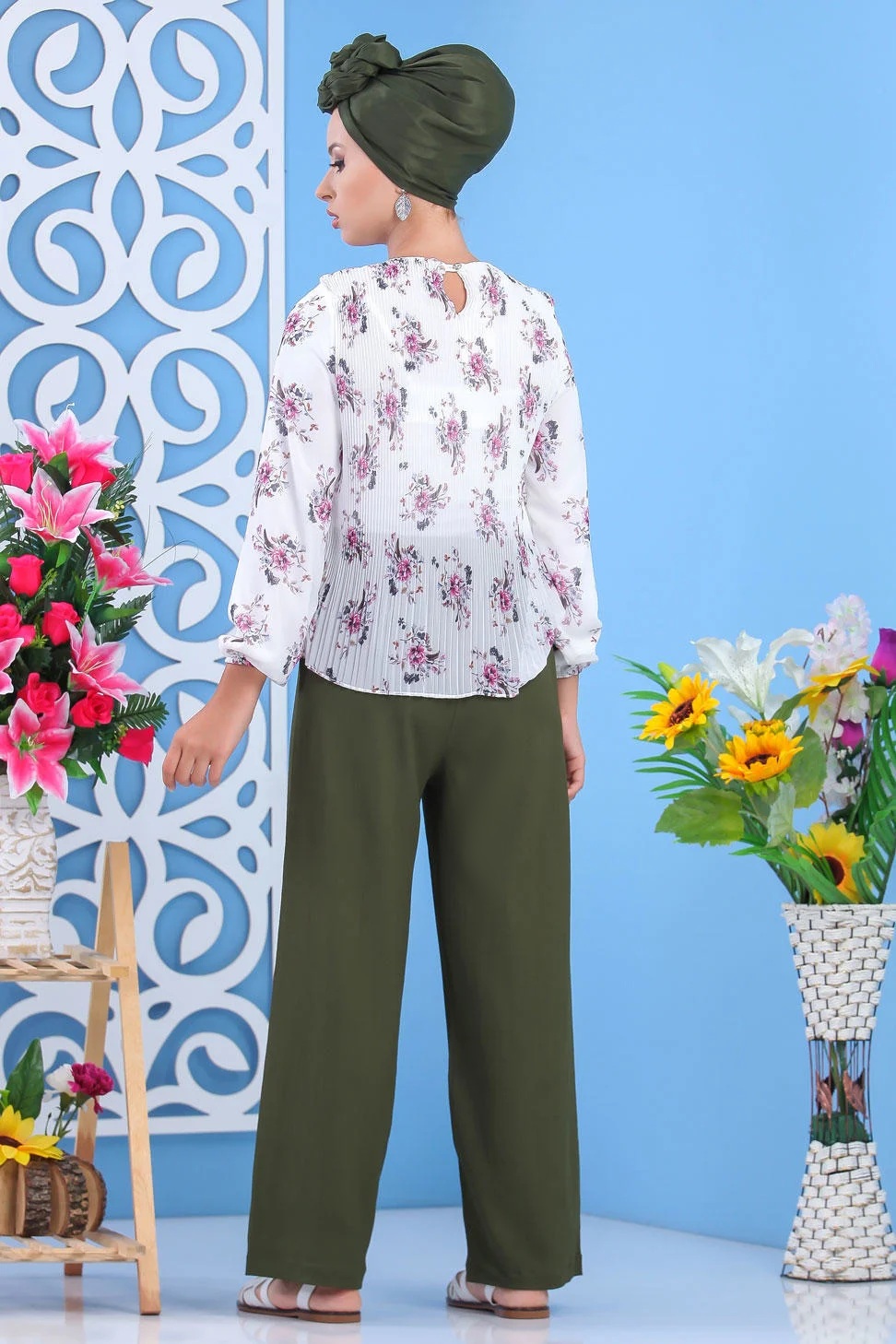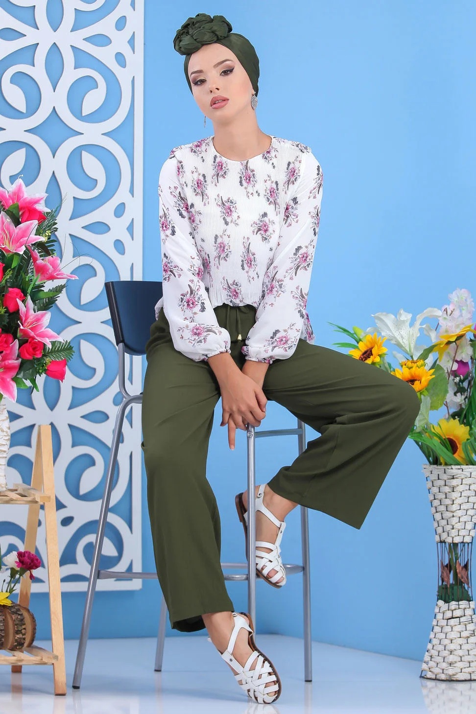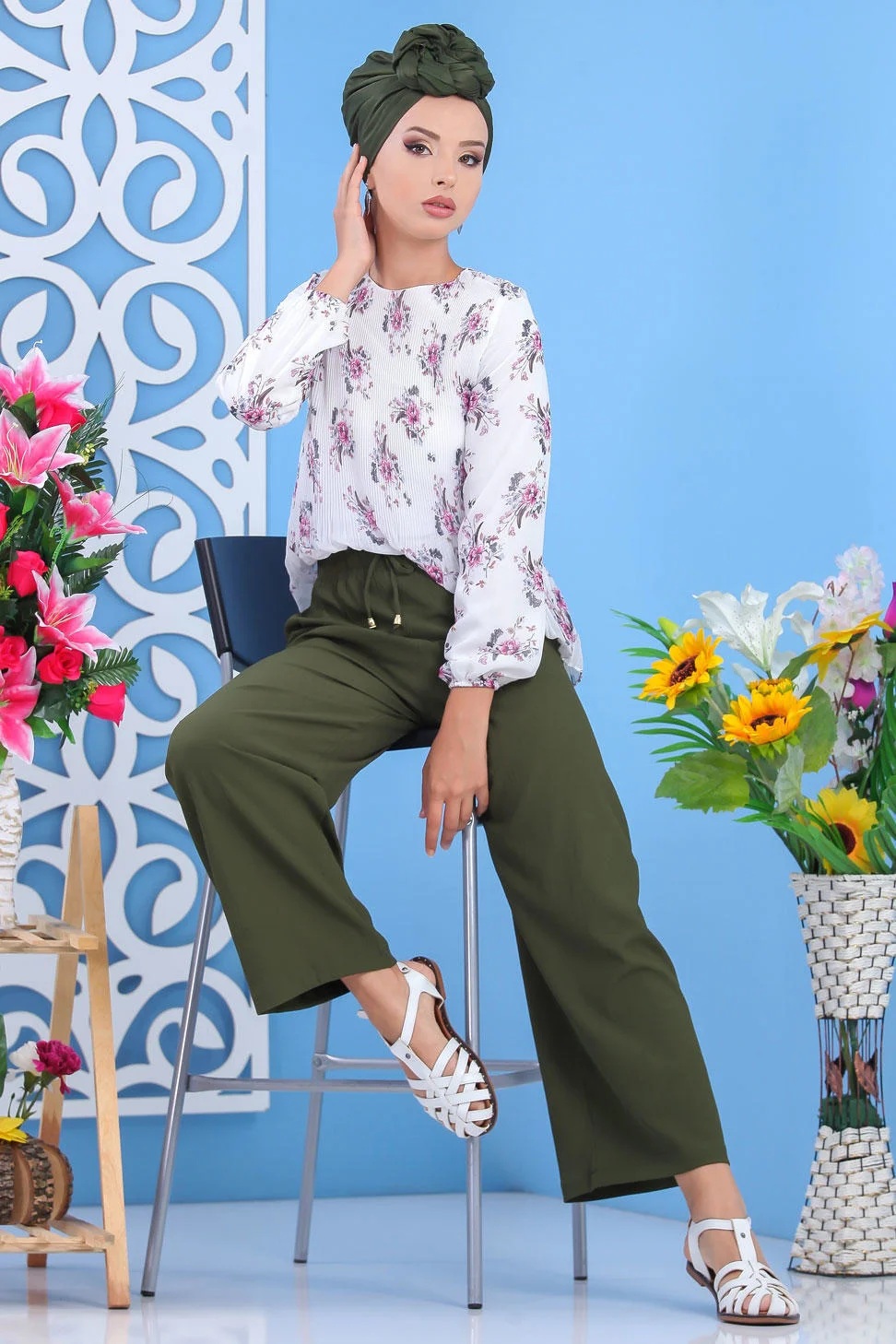 Pantalon plissé pour femme - Couleur kaki - REF. 35844 (19.90 €) - En Promotion à 14.90 €