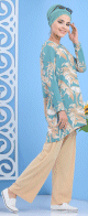 Ensemble tunique à boutons et pantalon assorti pour femme (Tenue hijab classique) - Couleur menthe - REF. 36016 (36.90 €)