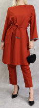 Ensemble femme moderne chic - Tunique longue à strass et pantalon - Couleur brique - REF. 33061 (38.00 €)