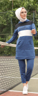 Survêtement tricolore à capuche imprimé "Breathe" (Sportswear femme voilée) - Couleur Bleu de Chanel, noir et blanc - REF. 33178 (29.90 €) - En Promotion à 24.00 €