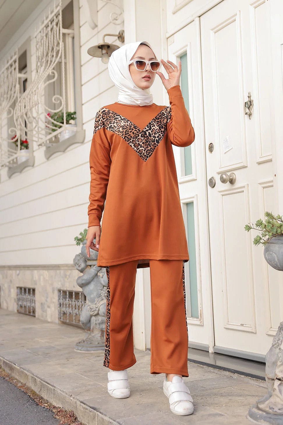 Ensemble survêtement 2 pièces léopard (Vêtement Sport Mastour pour Femme) - Couleur rouille Vetement & Accessoire