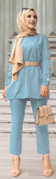 Ensemble tunique et pantalon assorti avec ceinture (Vetement pour femme voilée) - Couleur bleu chiné - REF. 34639 (29.00 €) - En Promotion à 24.90 €