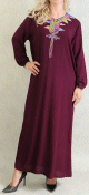 Robe de maison fluide à manches longues avec broderies multicolore pour femme - Couleur Prune