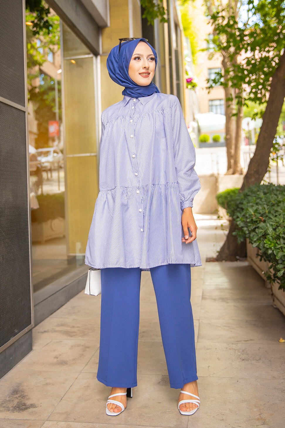 Chemise-Tunique casual ample à rayures bleues (Vetement pour femme voilée) Vetement & Accessoire