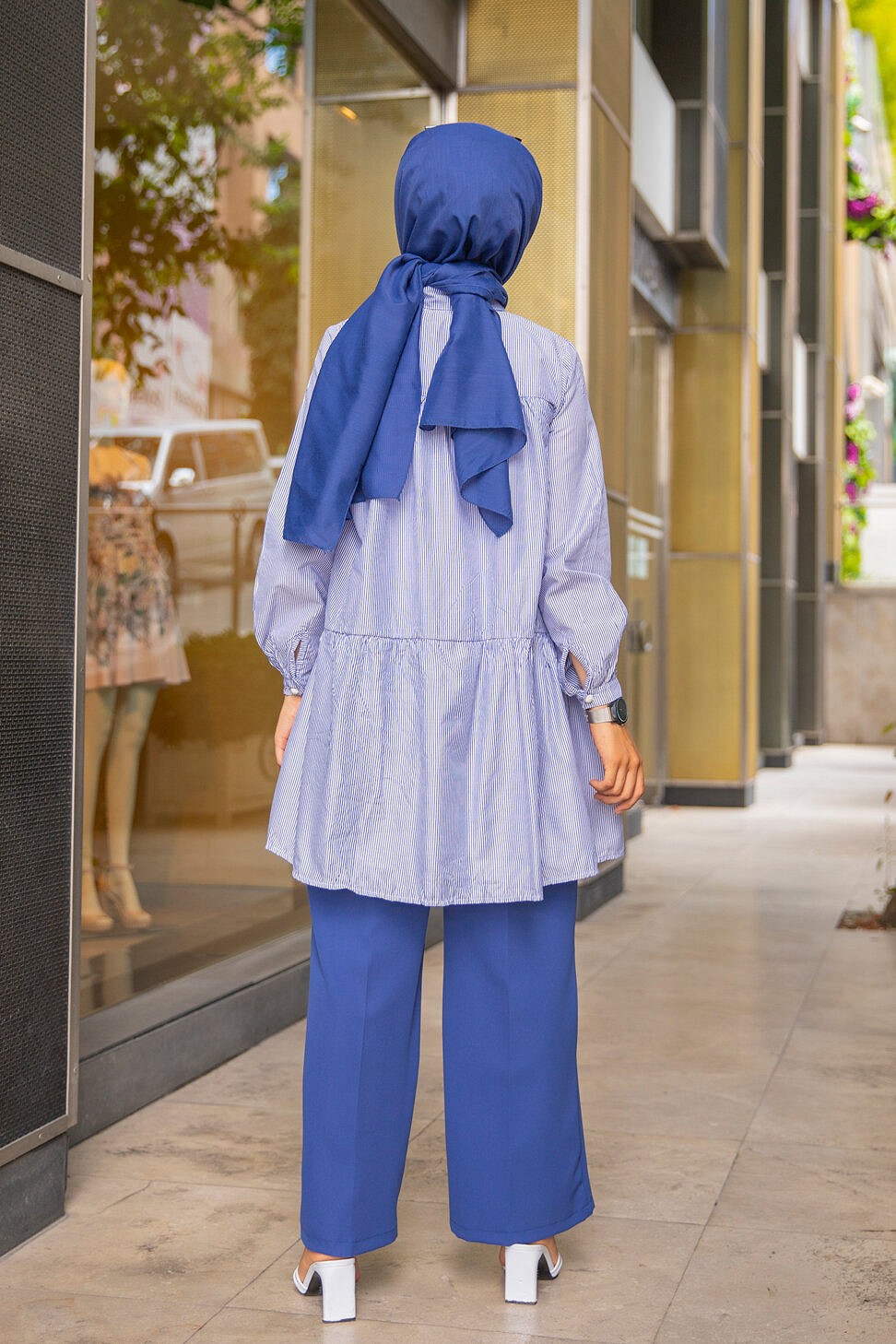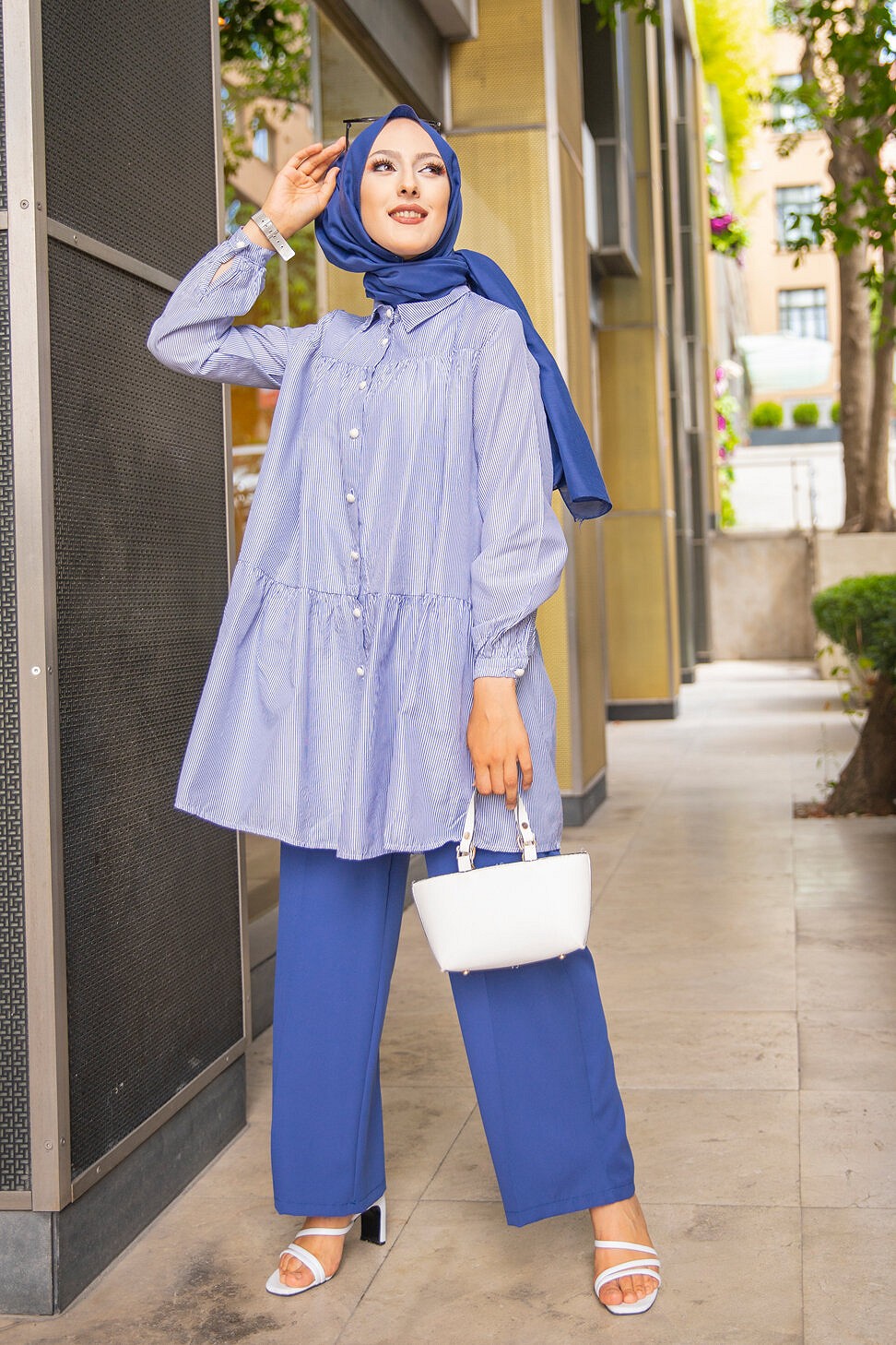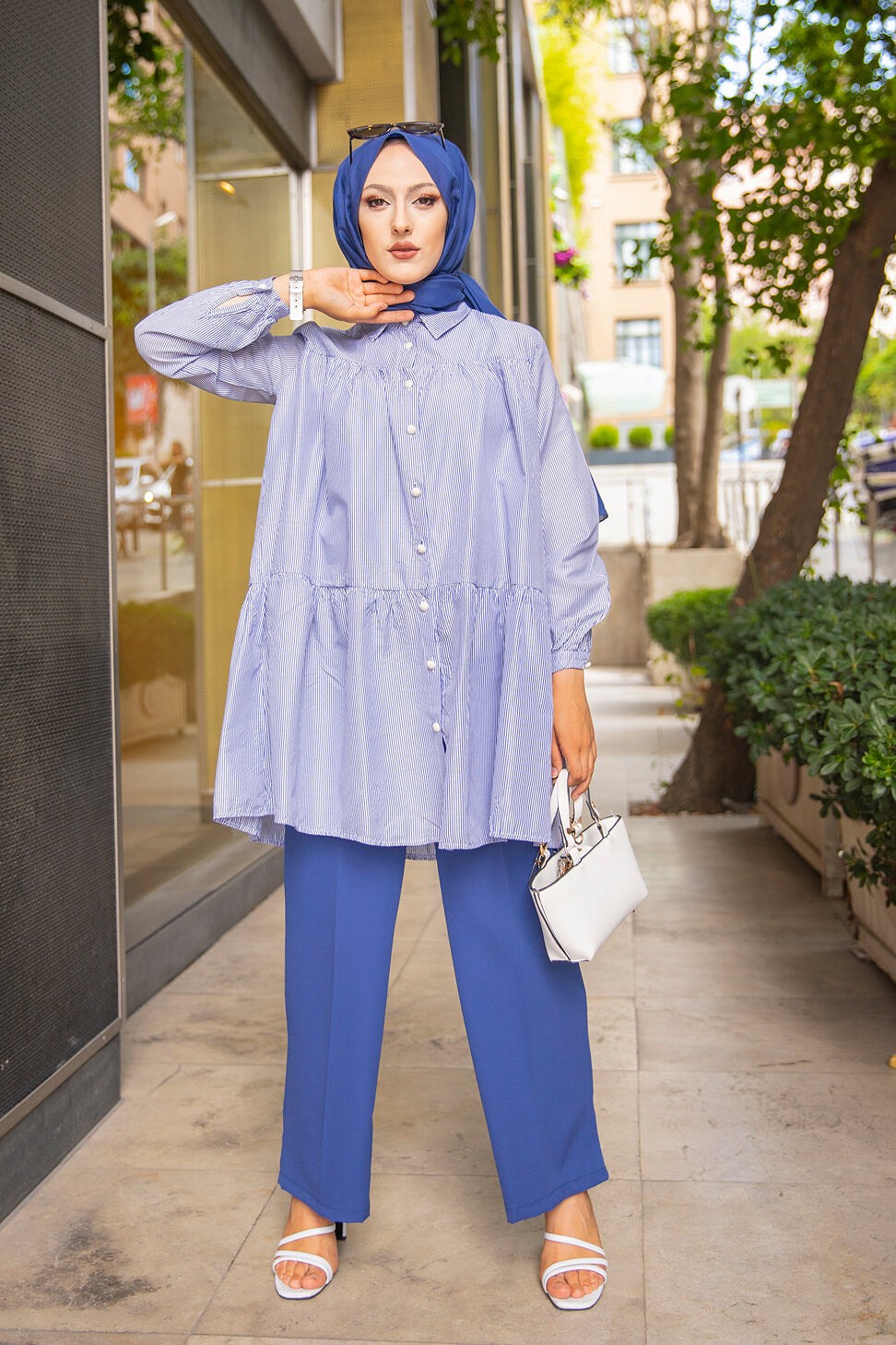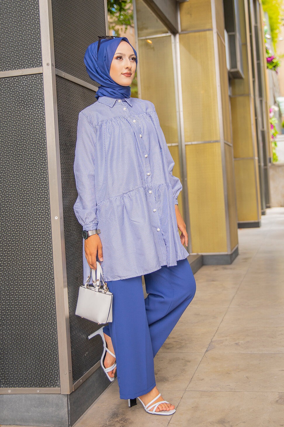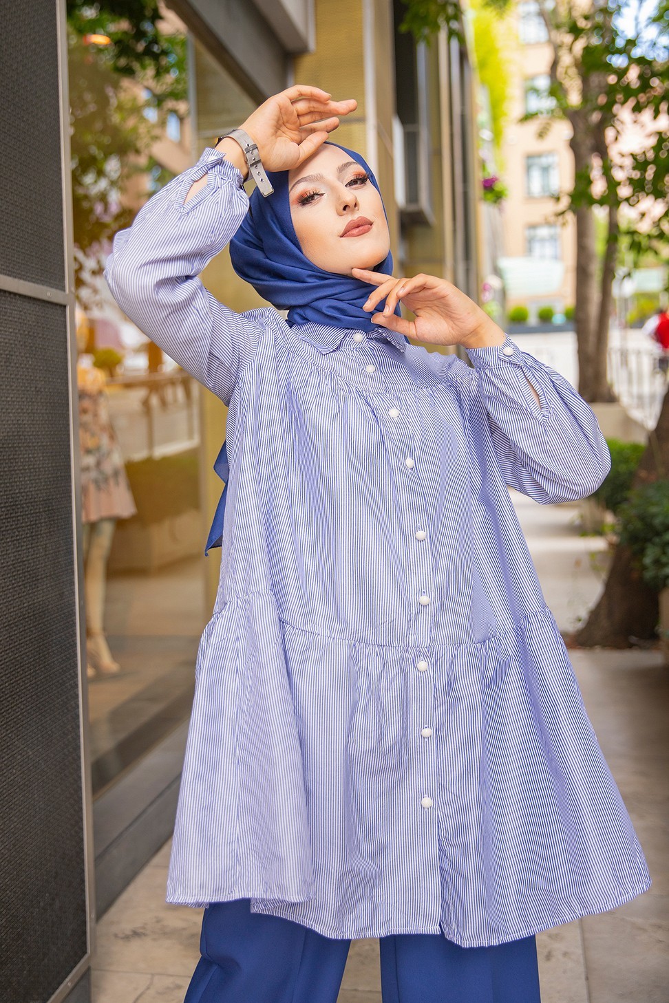 Chemise-Tunique casual ample a rayures bleues (Vetement pour femme voilee)