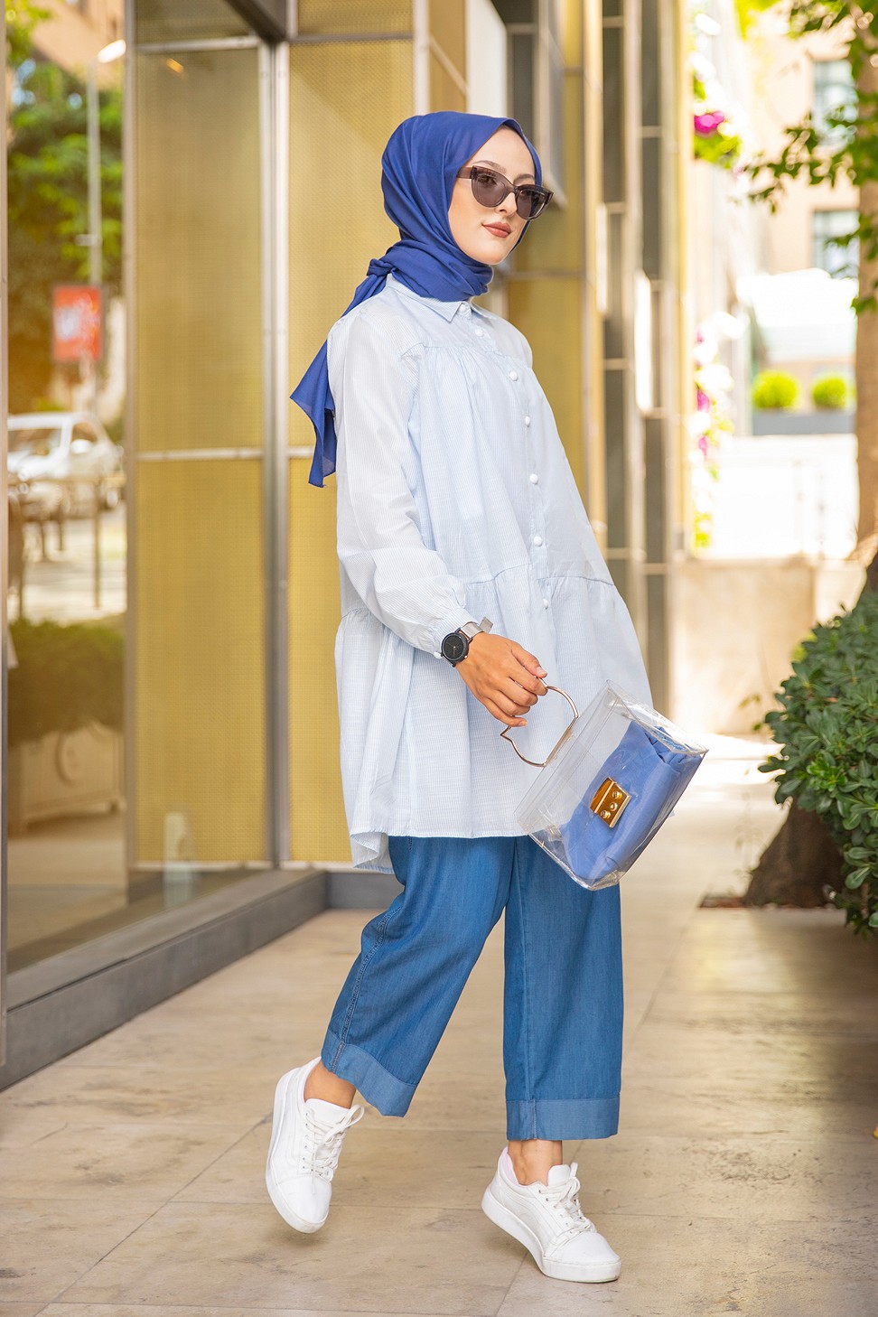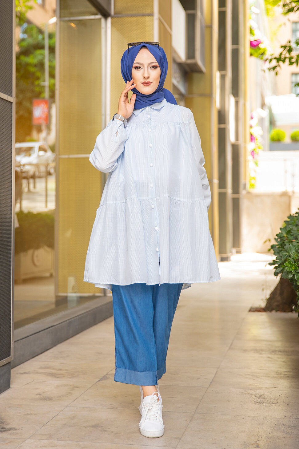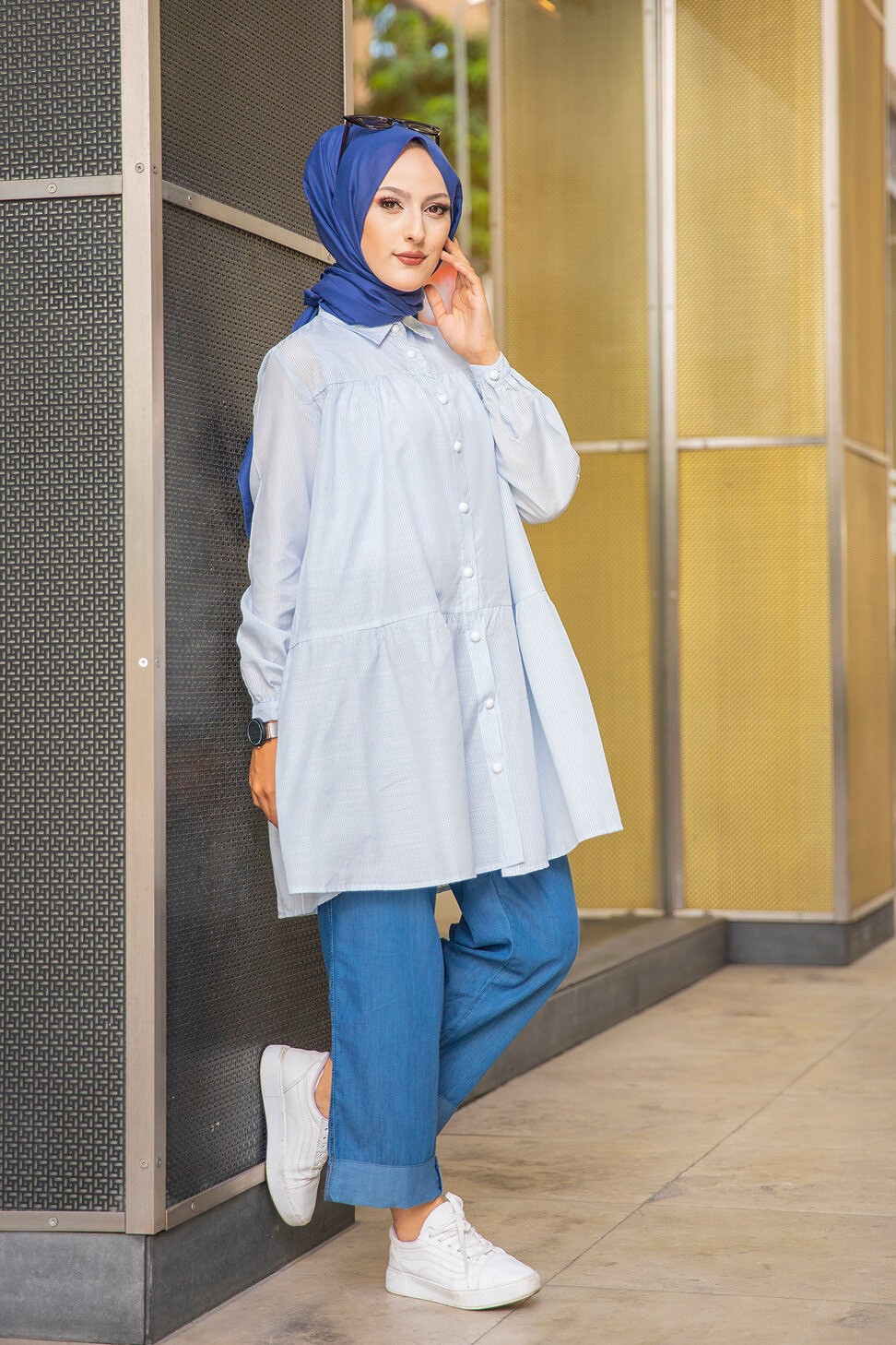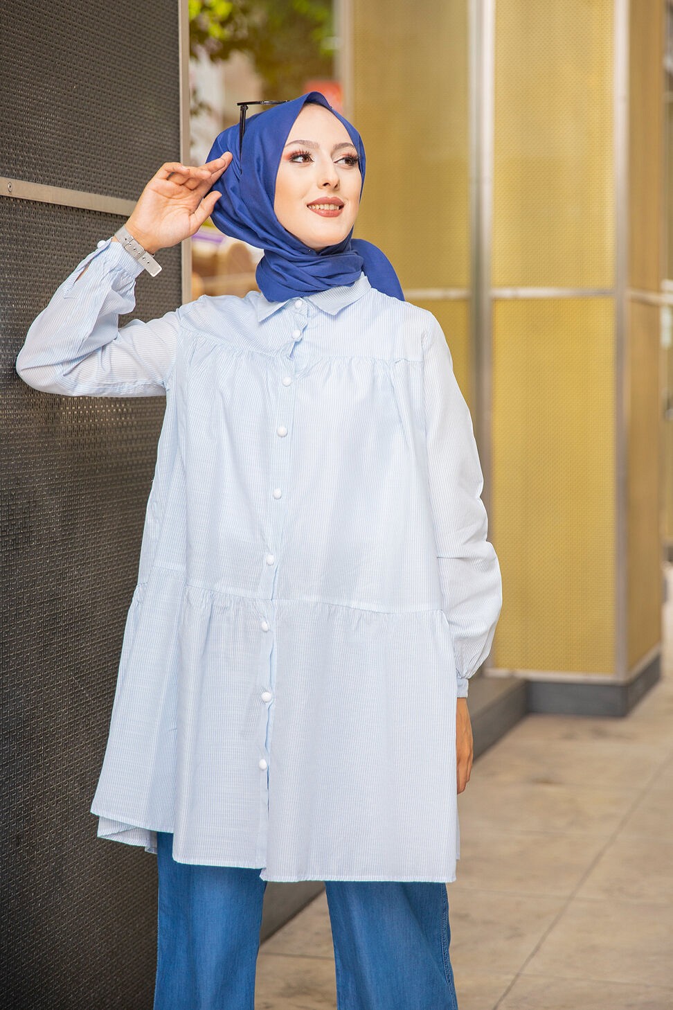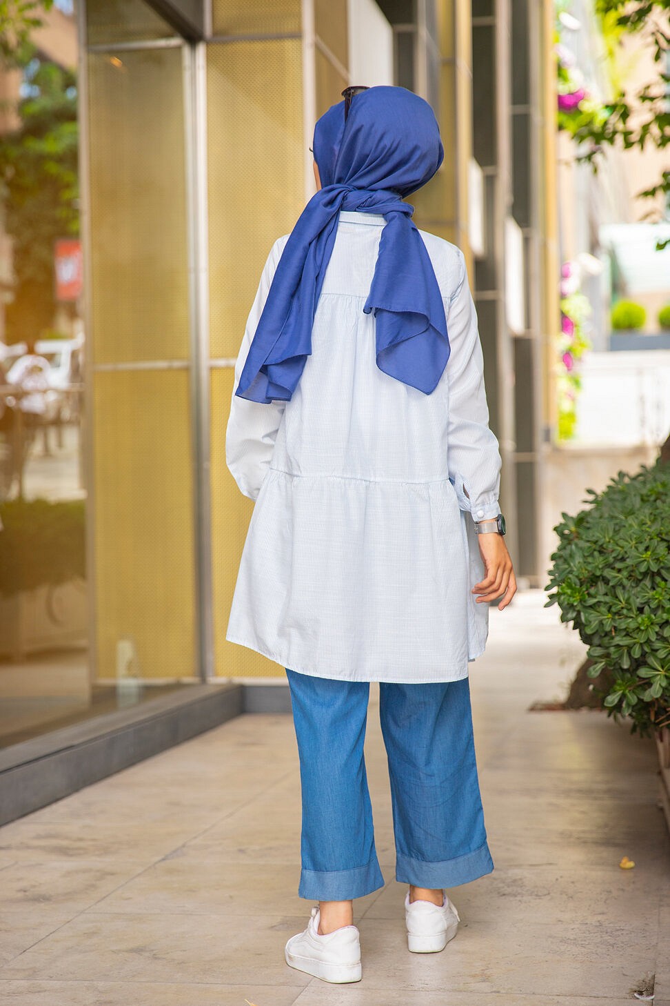 Chemise-Tunique tendance, coupe large et ample. Ce style oversize est d'ailleurs très appréciées pour leur confort et pour une allure mastour, elle se porte avec une jupe ou un pantalon pour un look moderne.