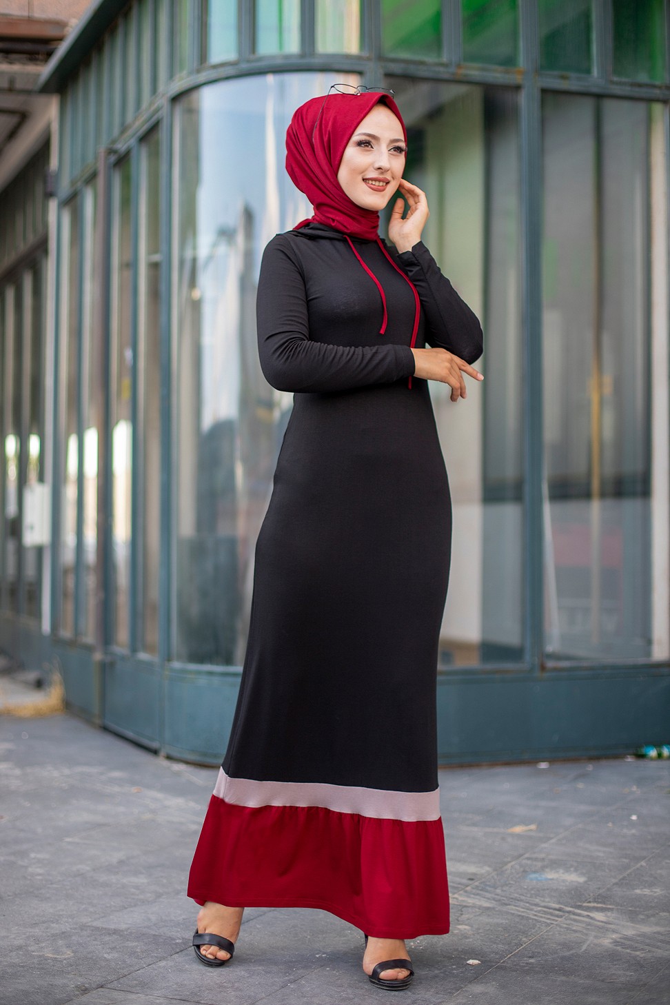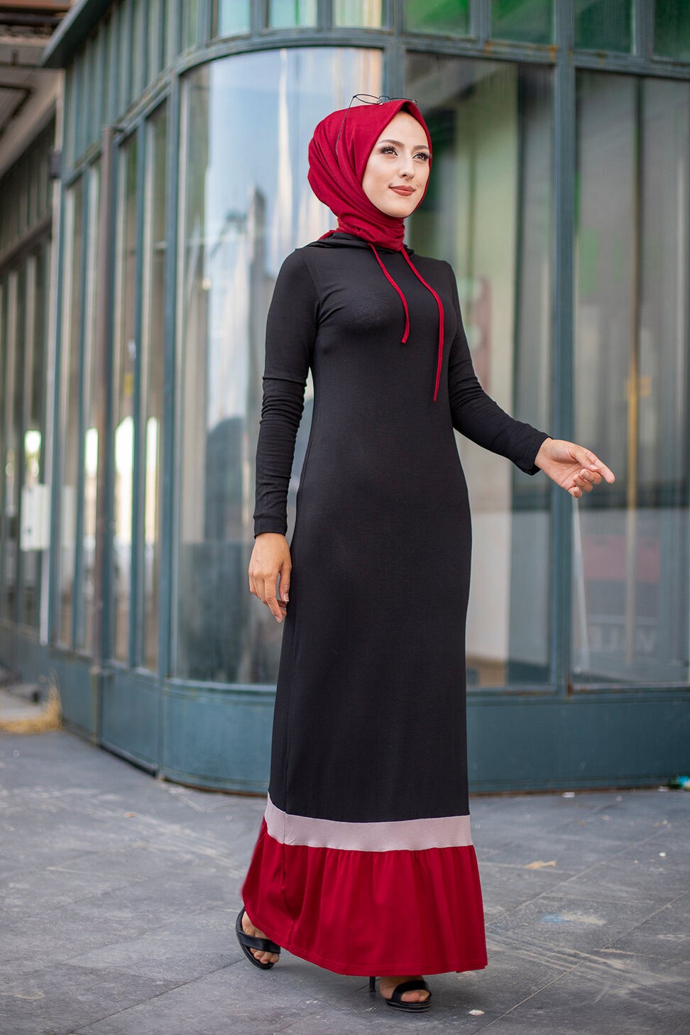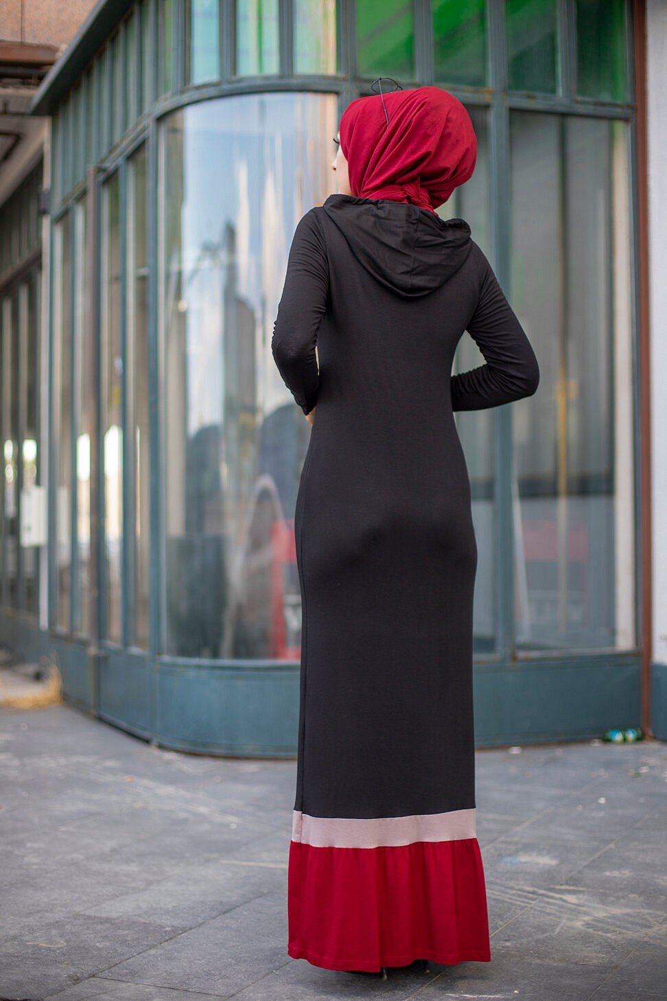 Robe longue Urban moderne avec capuche (Vetement pour femme voilée) - Couleur noir et grenat Vetement & Accessoire