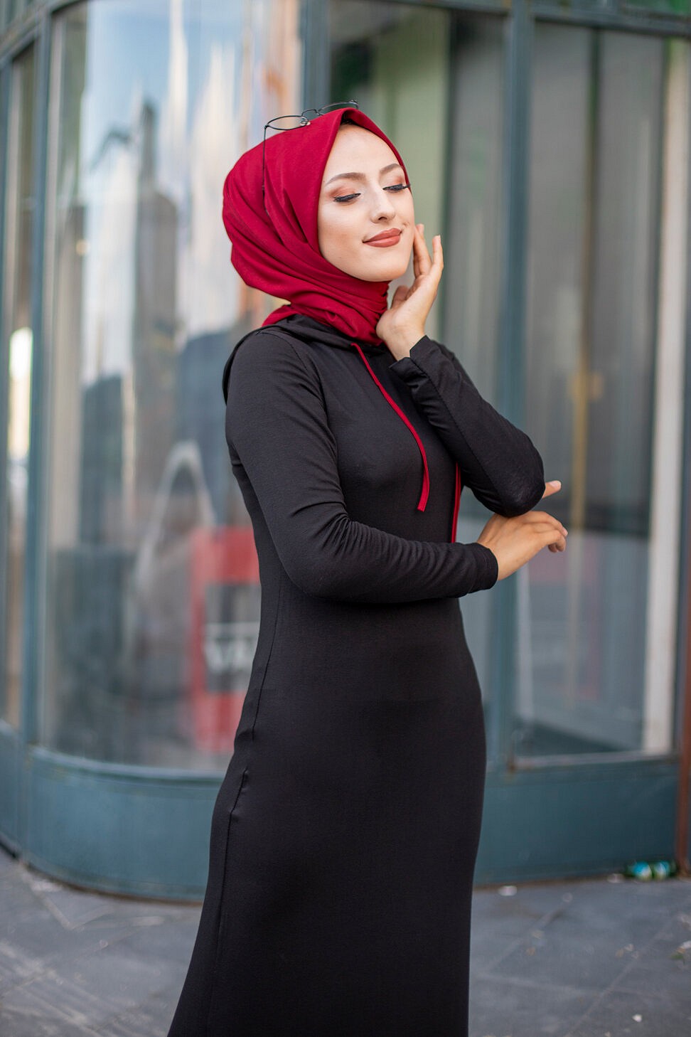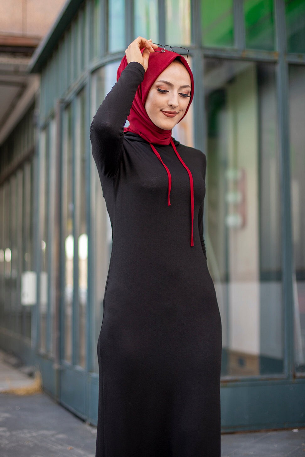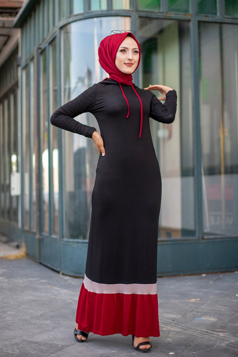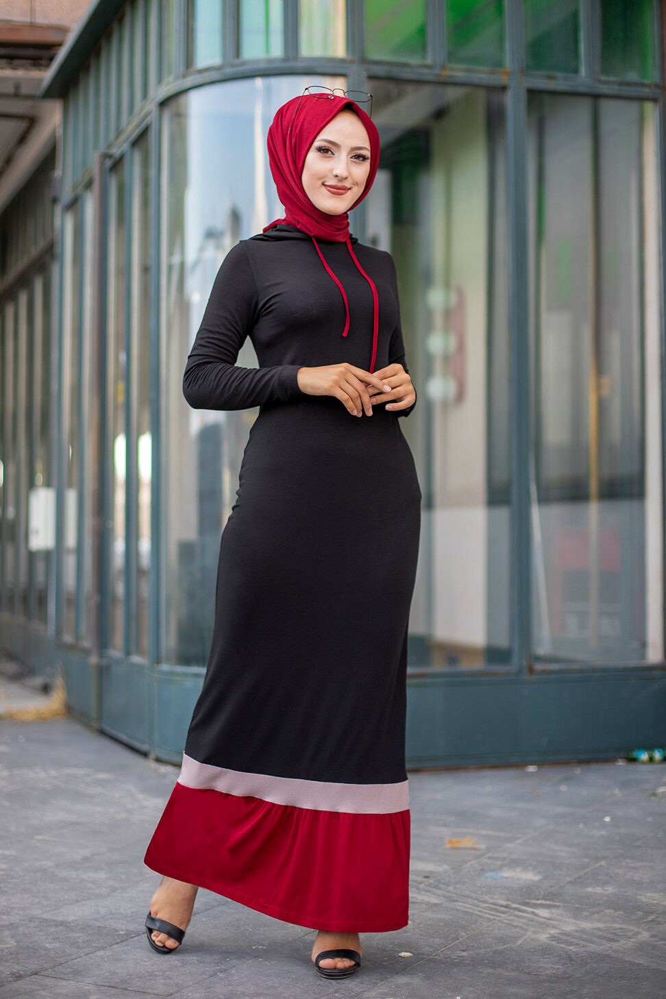 Robe longue Urban moderne avec capuche (Vetement pour femme voilée) - Couleur noir et grenat Vetement & Accessoire