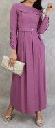 Robe longue avec ceinture large à pression (Vetement Turque en ligne pour femme) - Couleur Mauve - REF. 32416 (38.00 €)