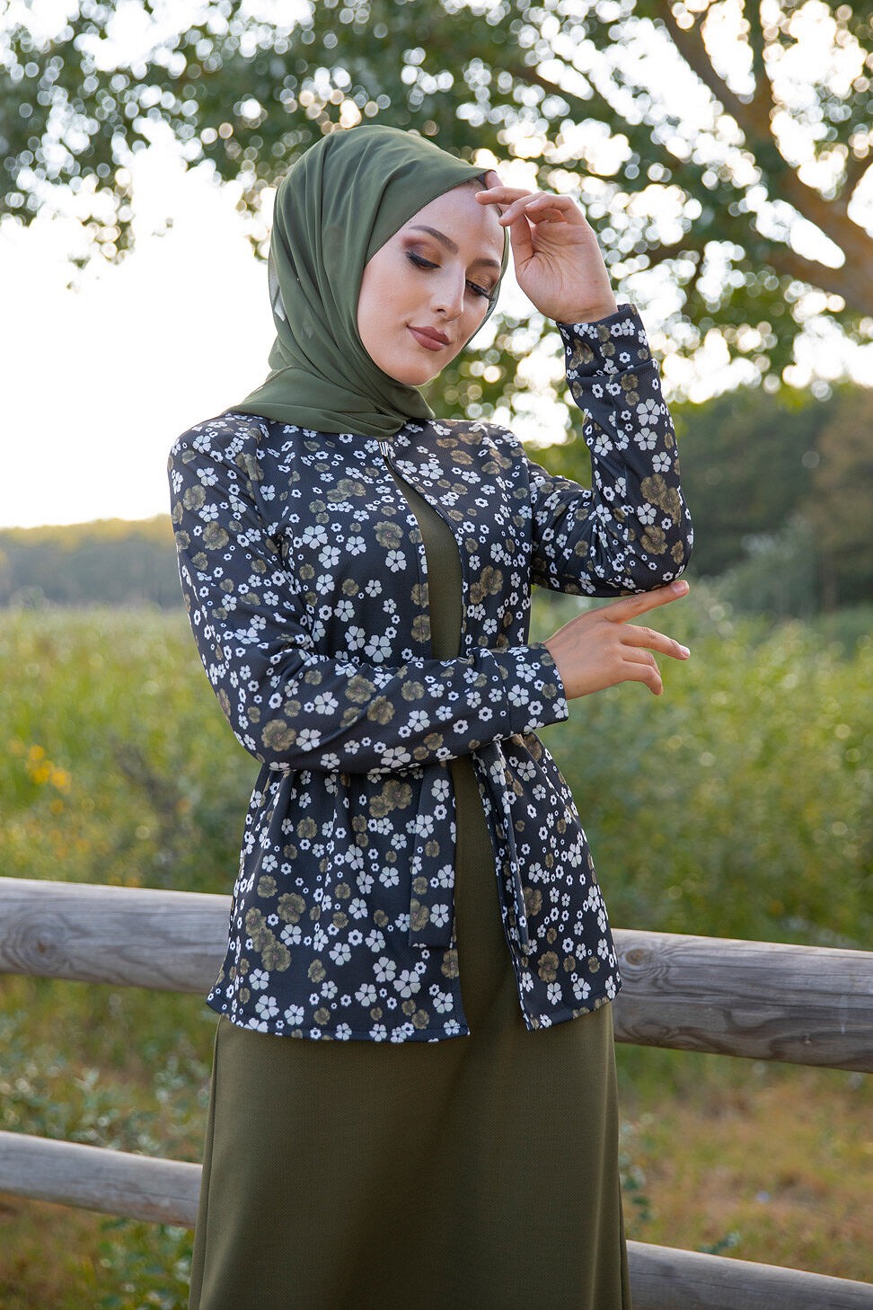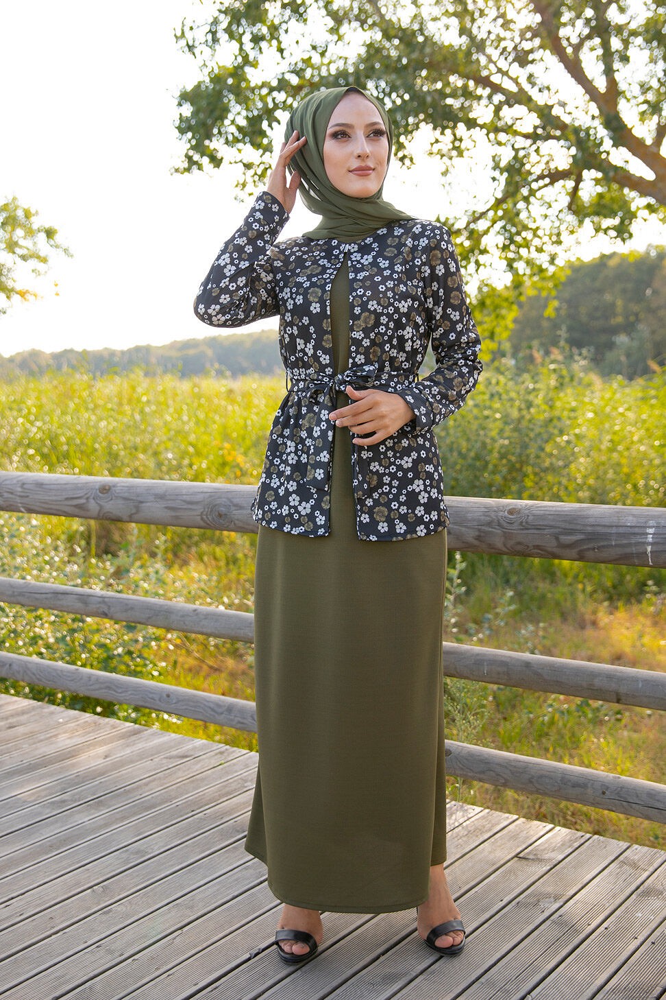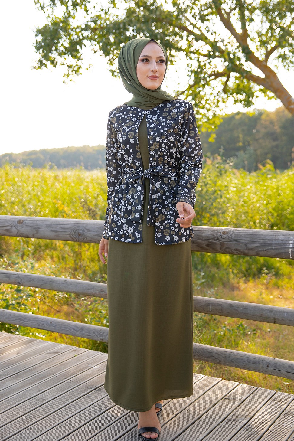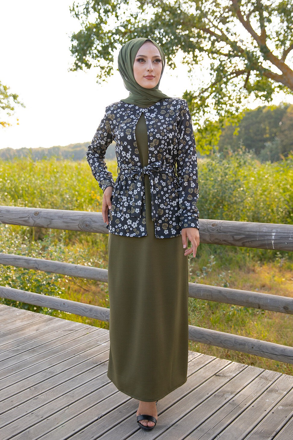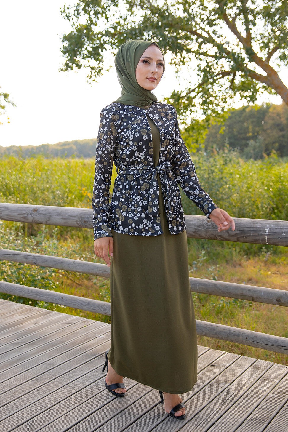 Ensemble Robe et Veste Gilet (Tenue musulmane chic) - Couleur Kaki