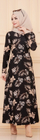 Robe fleurie en crêpe pour femme (Mode musulmane - Nouveauté) - Couleur noir - REF. 35937 (24.90 €)