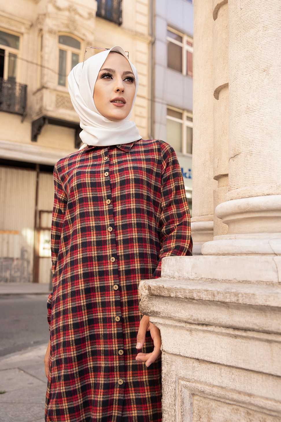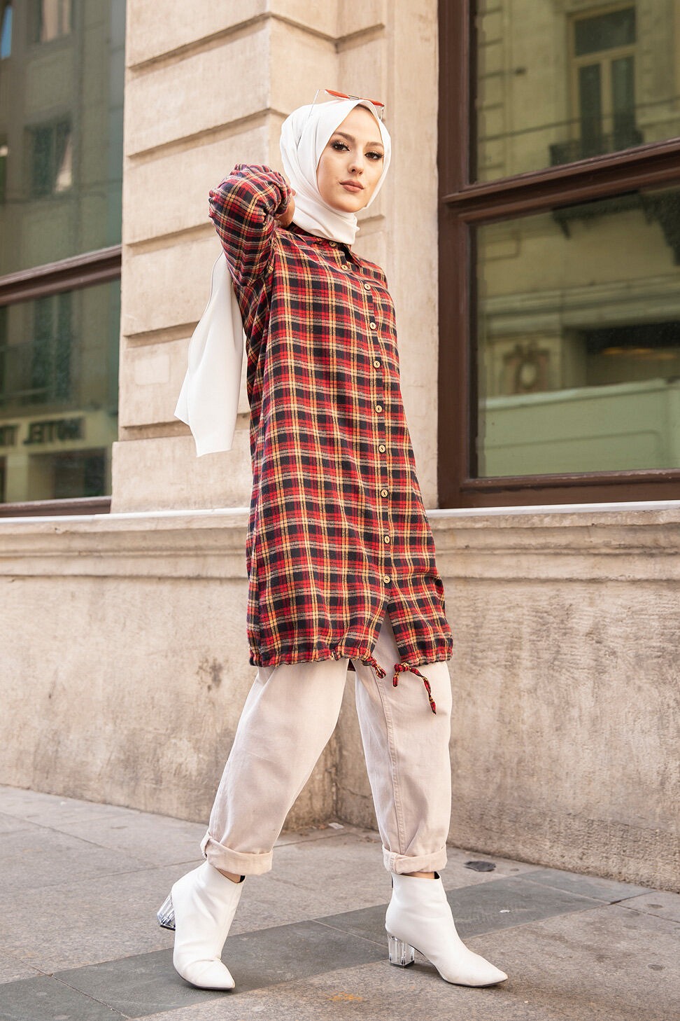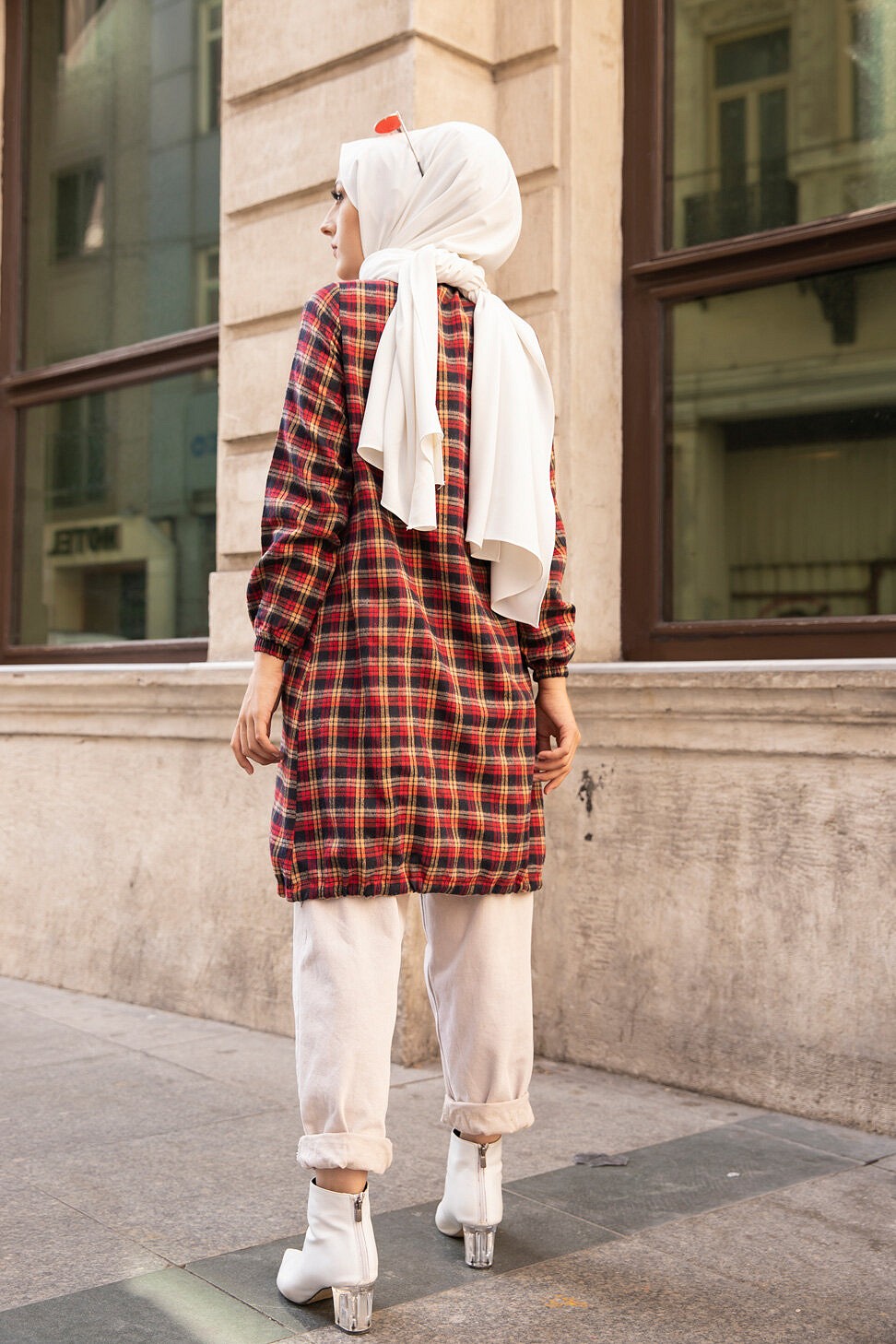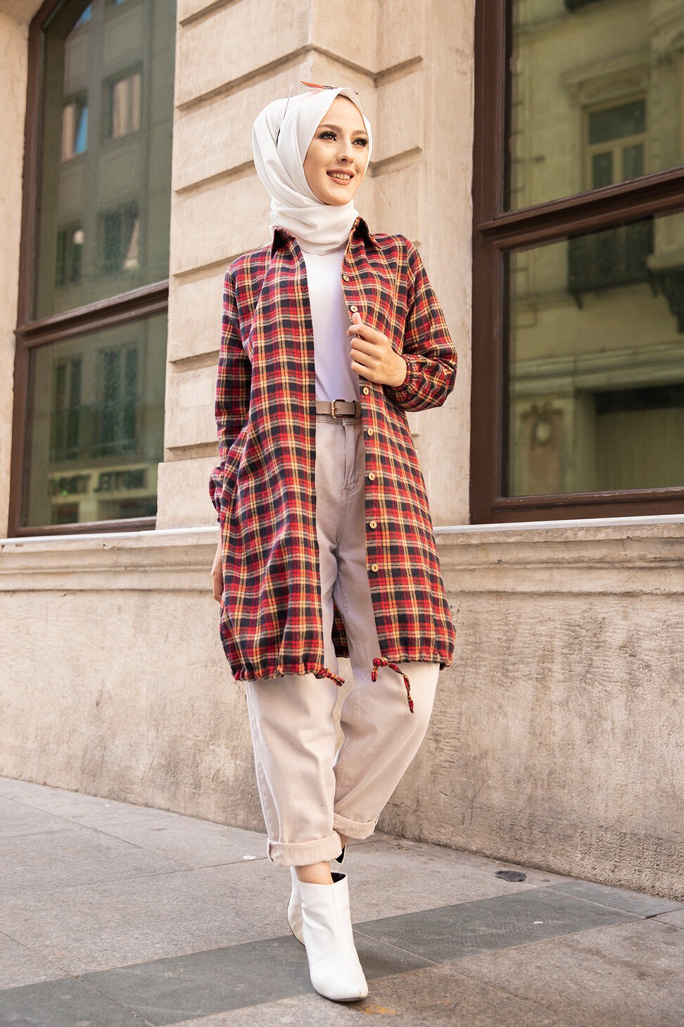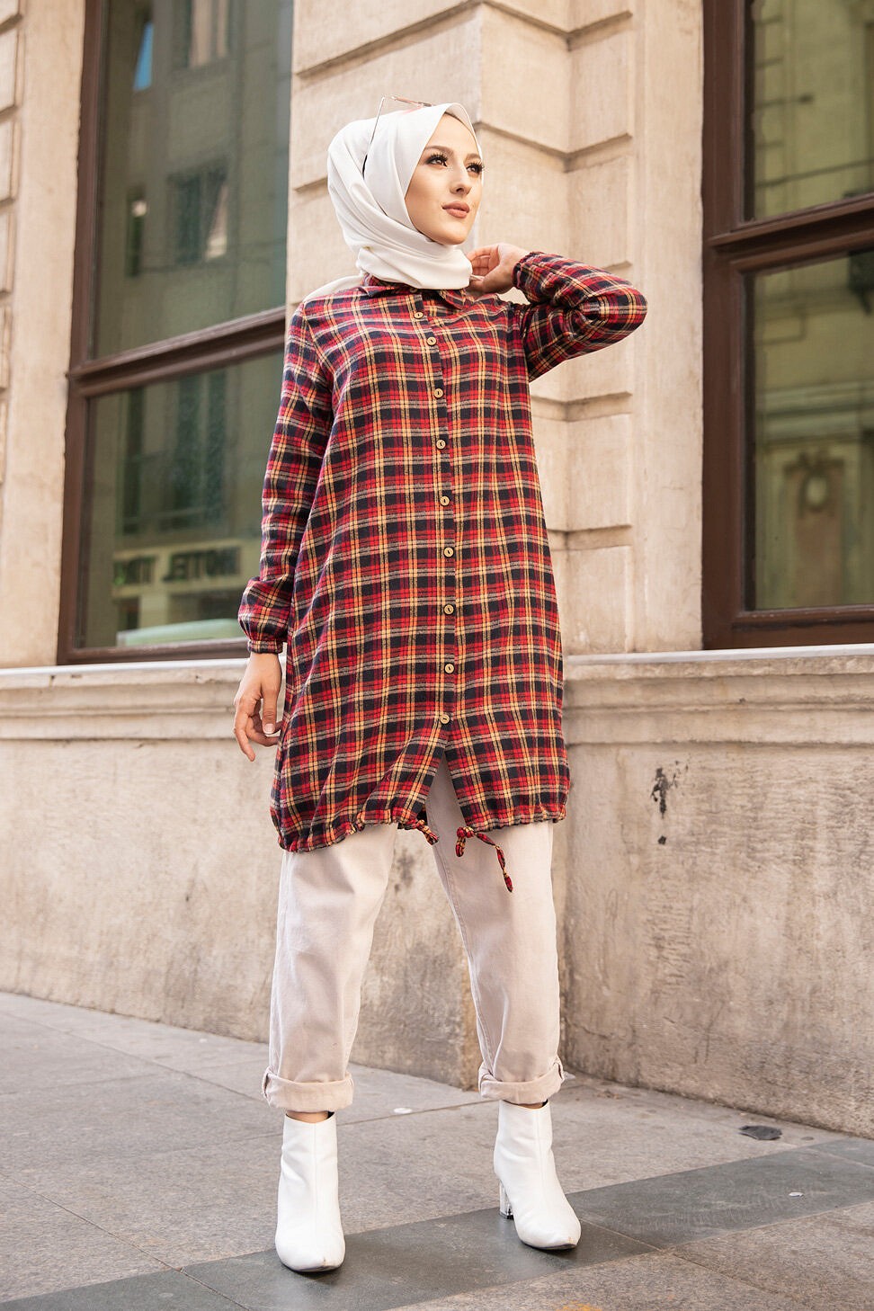 Ce modèle affiche un motif carreaux tendance. Il est idéal pour réchauffer une tenue à la mi-saison.