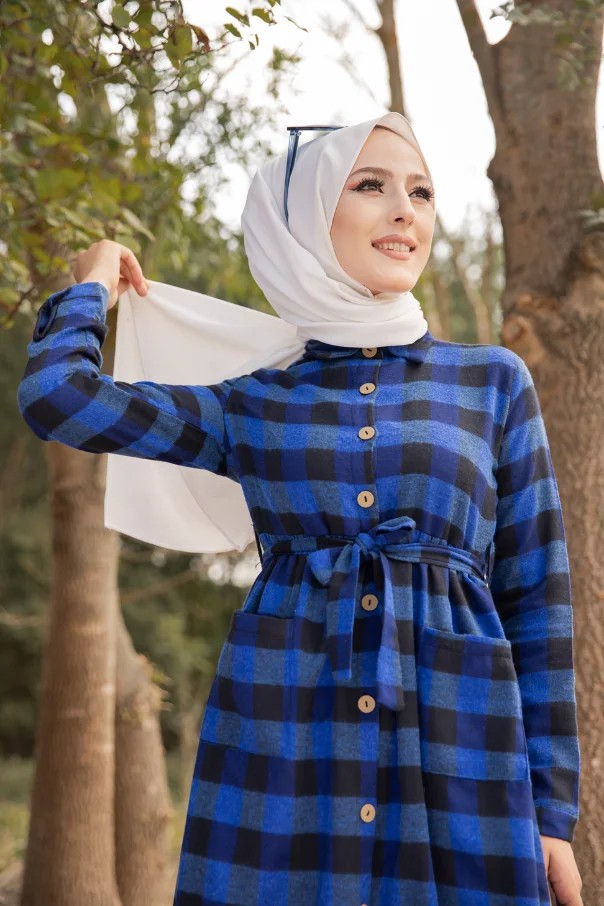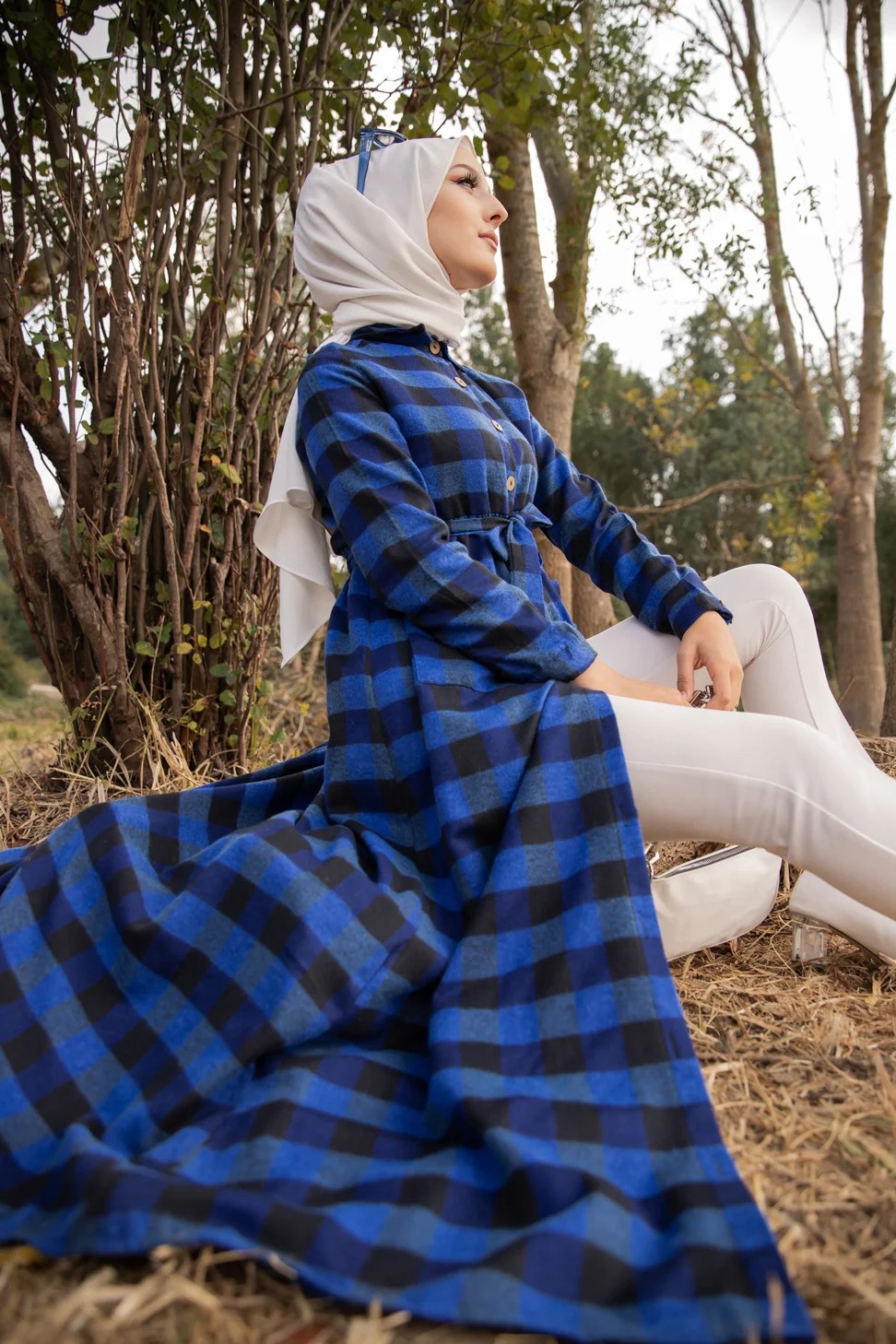Robe chemise longue à carreaux avec ceinture assortie pour femme - Couleur Bleu roi et noir Vetement & Accessoire