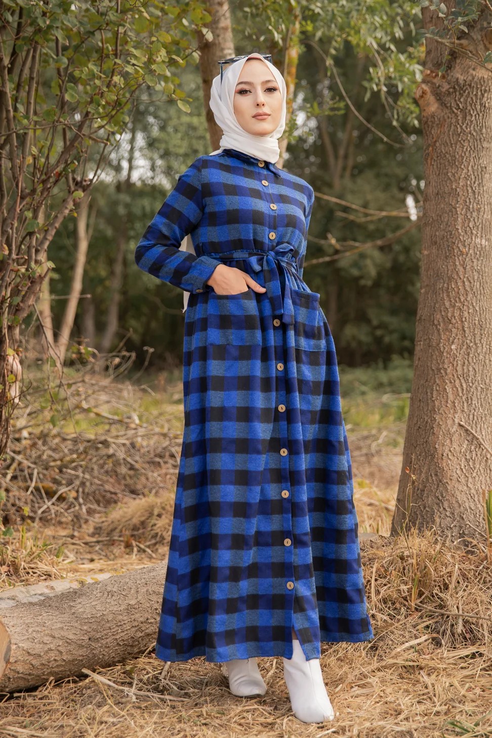 Chemise longue à carreaux (Vêtement hijab boutique en ligne) - Couleur noir et kaki - REF. 38336 (24.90 €)