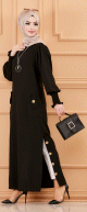 Robe chic avec boutons (Vêtement style habillé hijab - Boutique en France) - Couleur noir - REF. 36483 (32.00 €)
