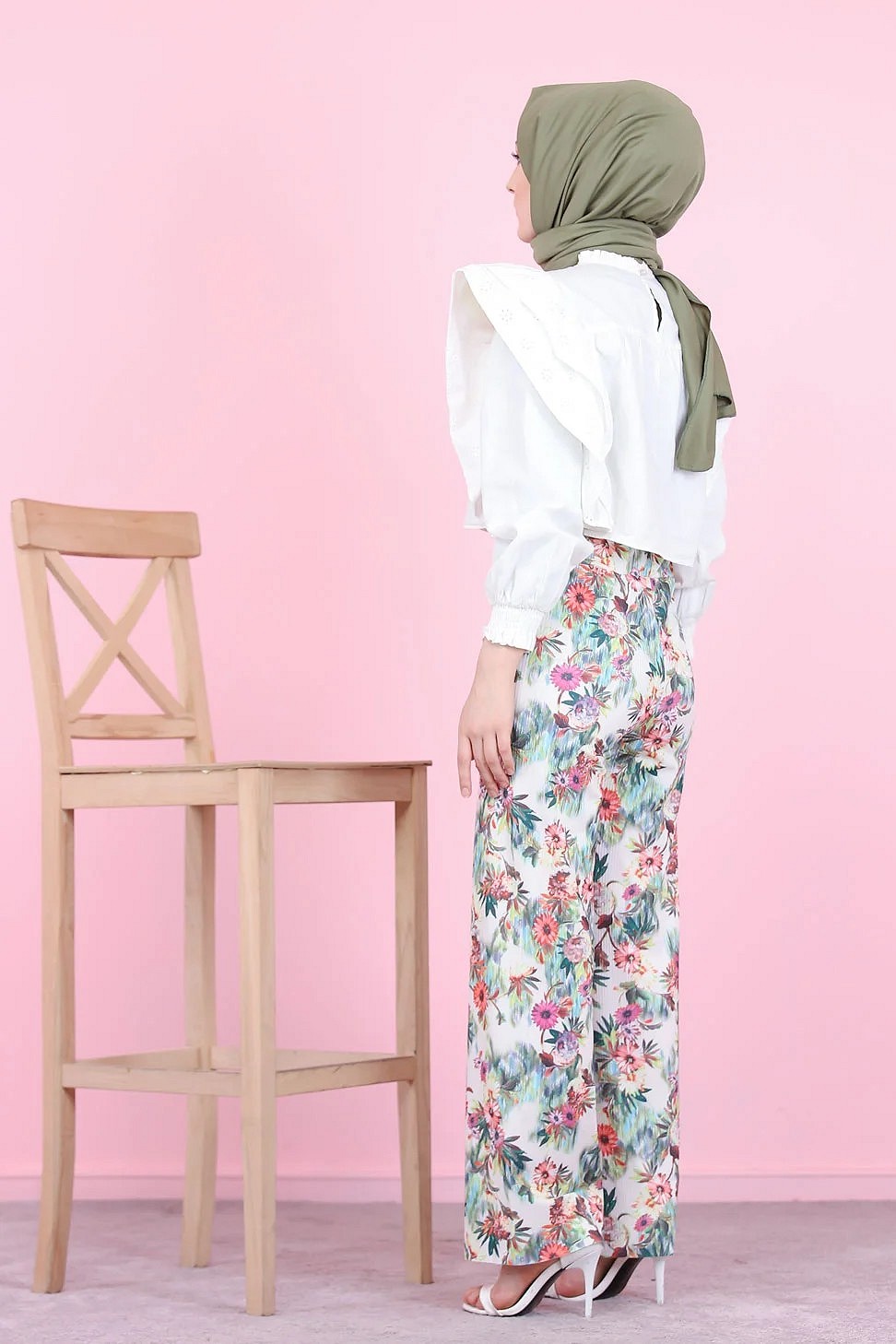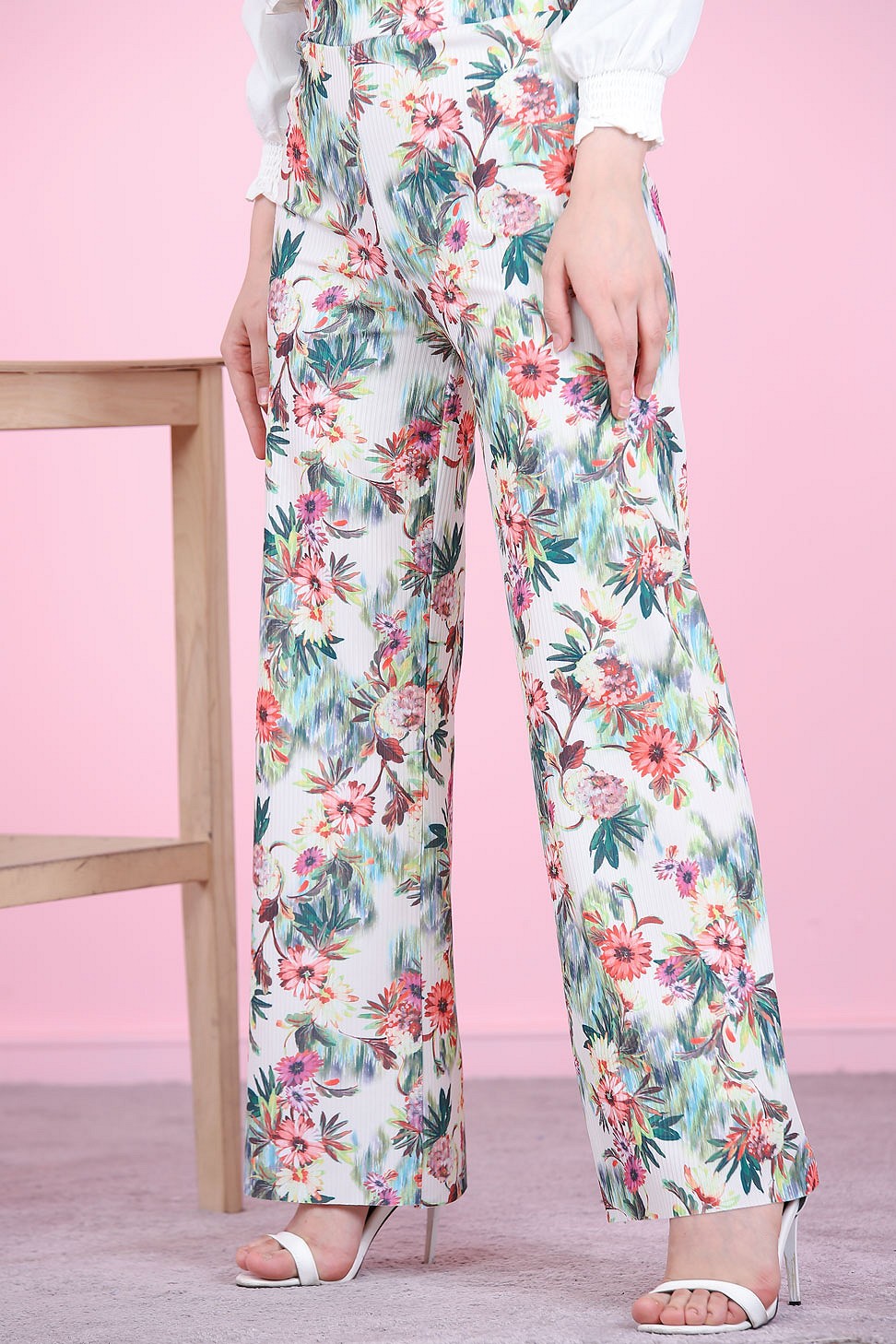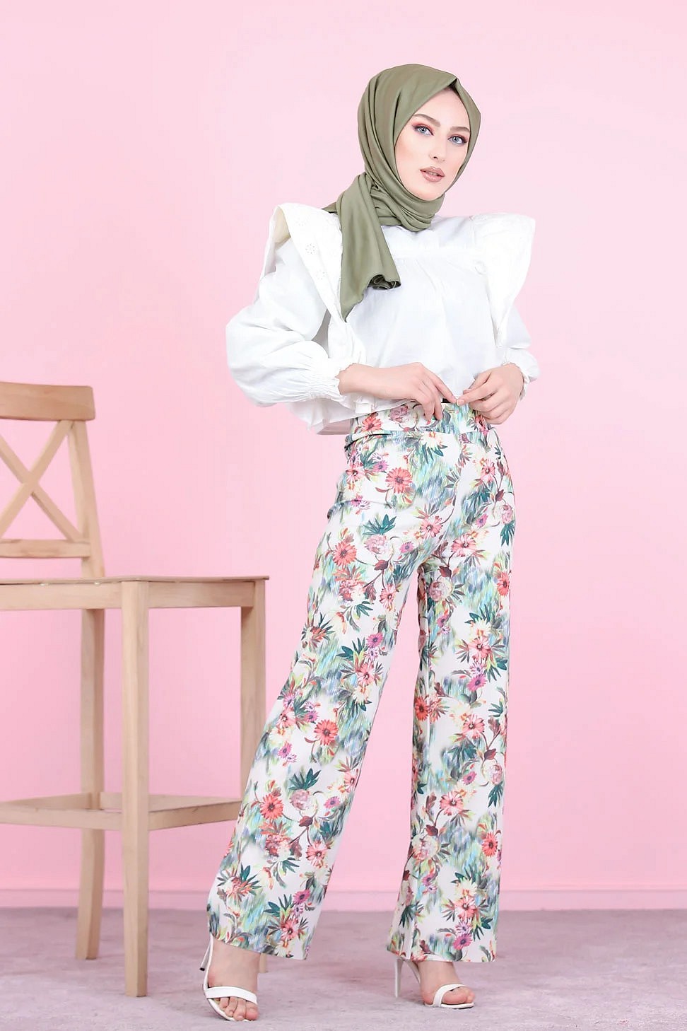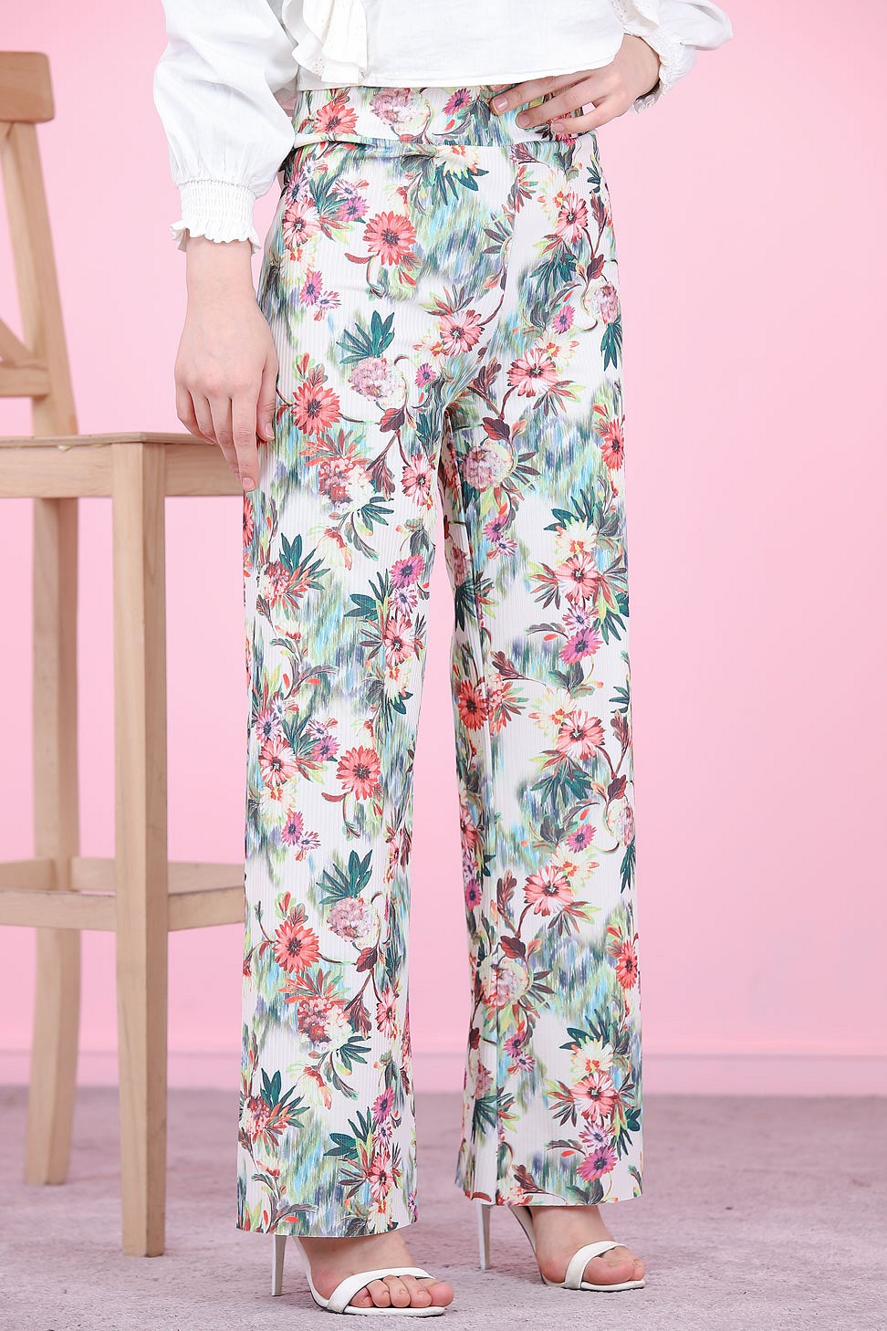 Pantalon femme imprimé à fleurs vert Vetement & Accessoire