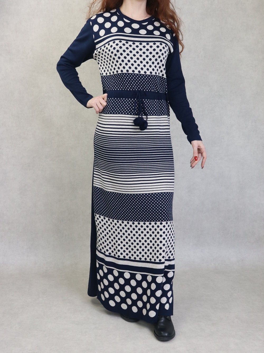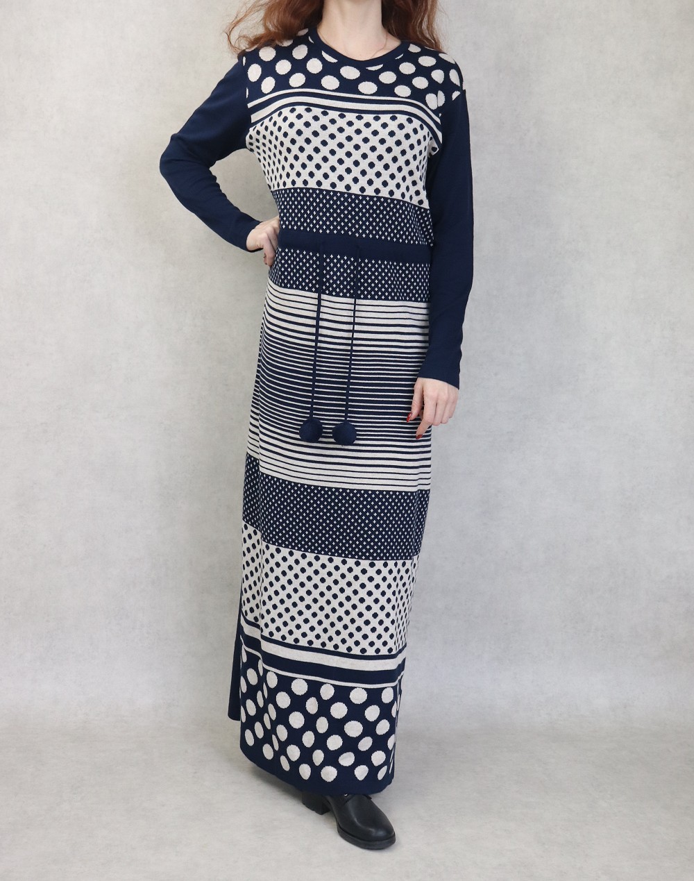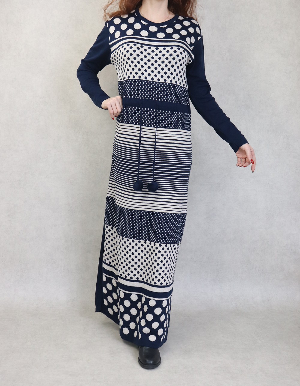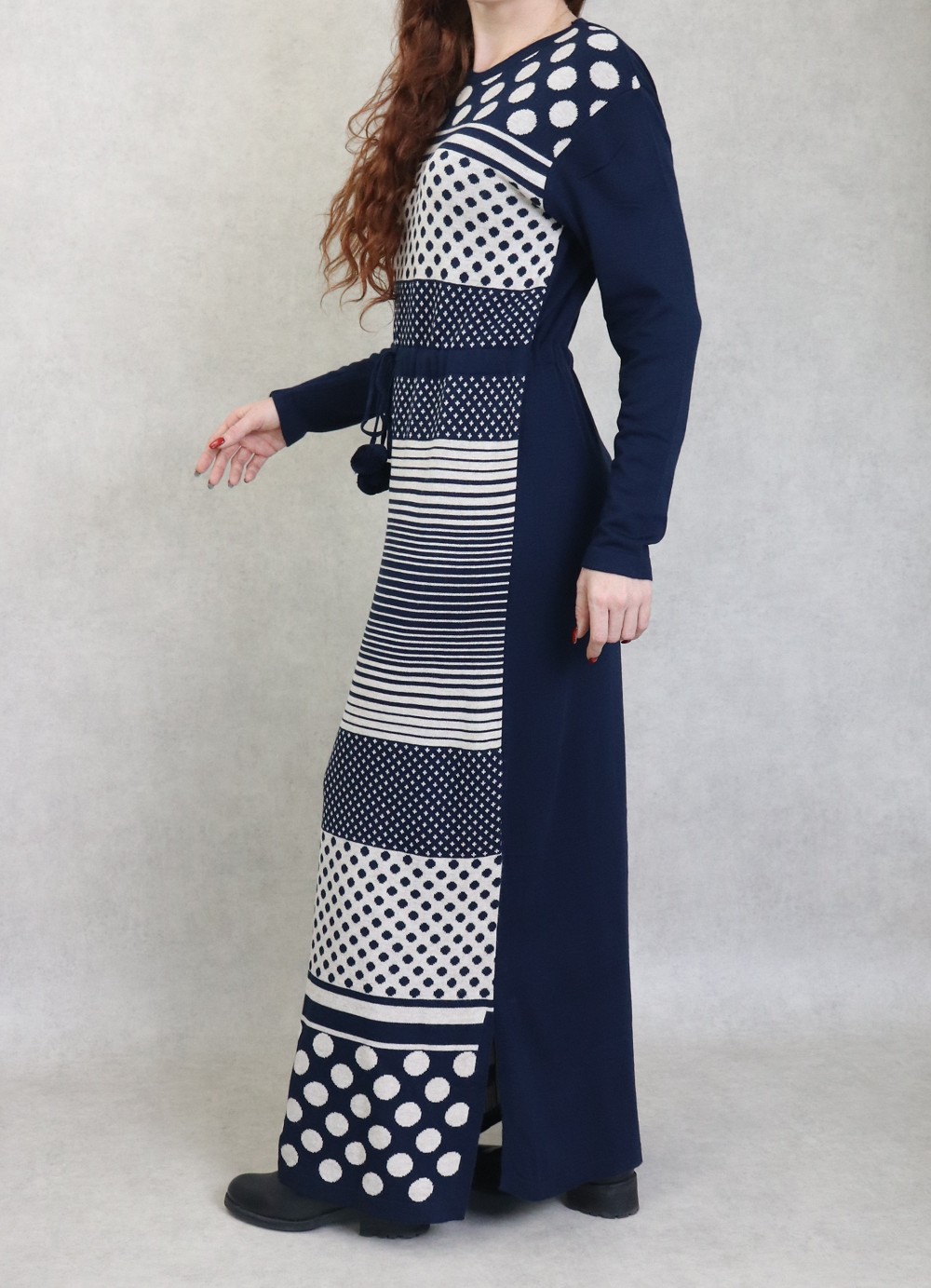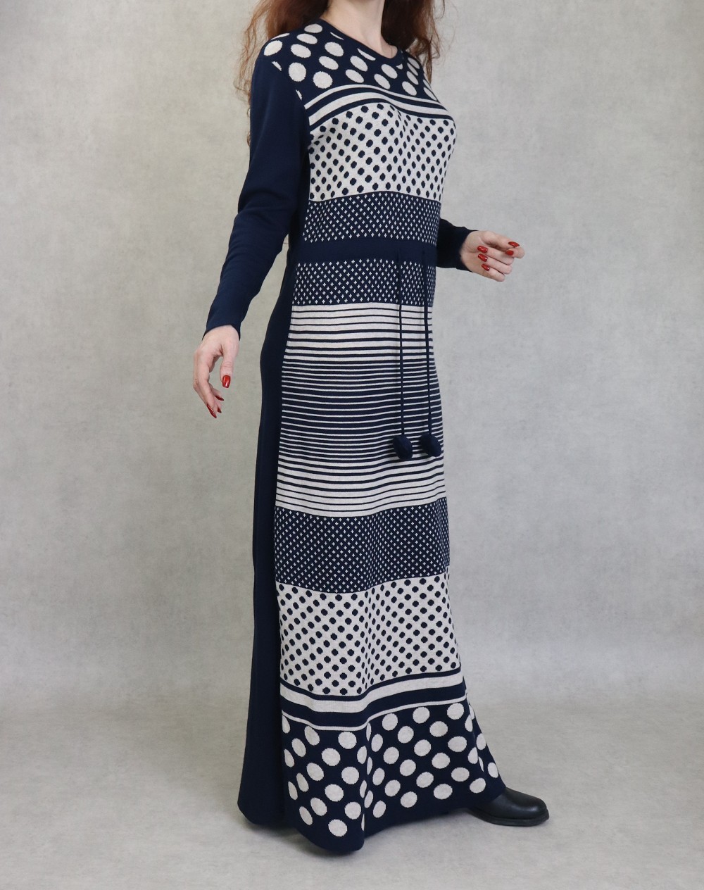 Robe maxi-longue en maille à motifs bicolore pour femme (Nouveauté Automne-Hiver) - Couleur Bleu marine Vetement & Accessoire