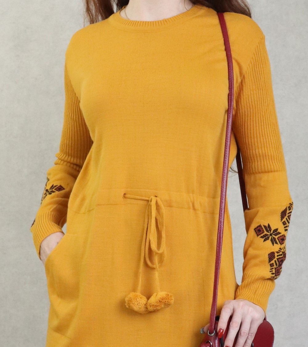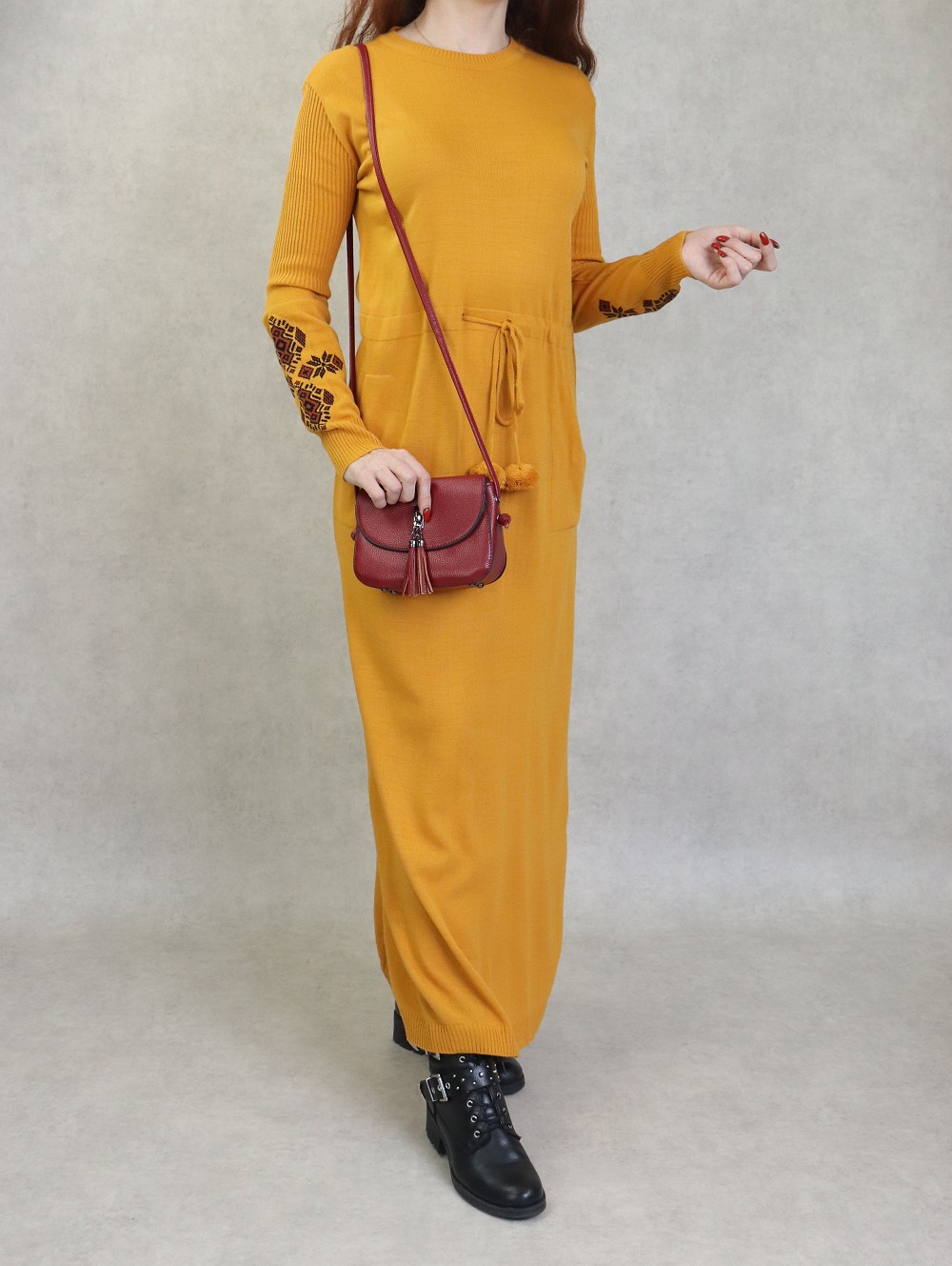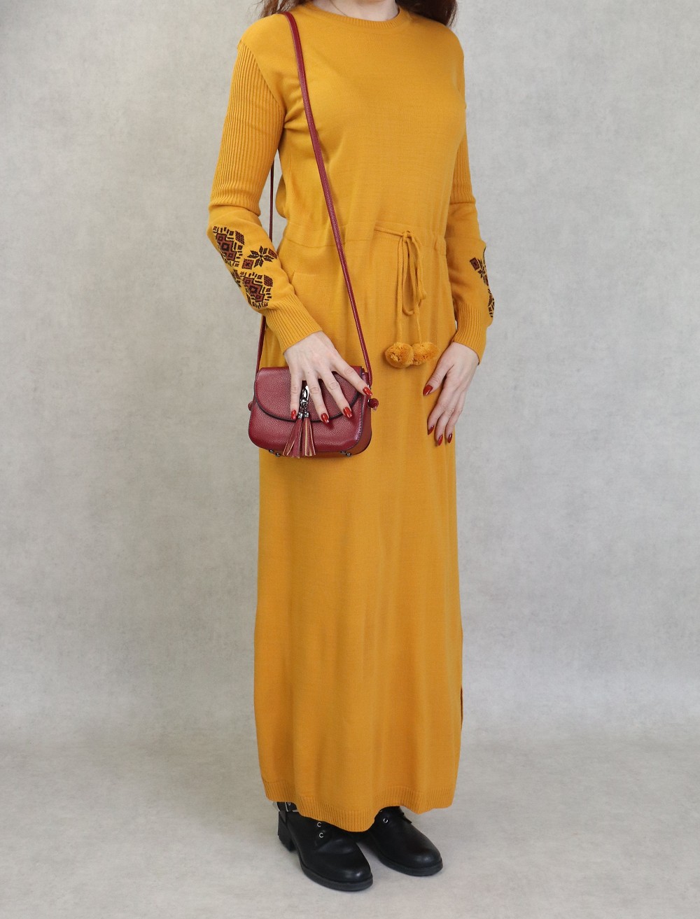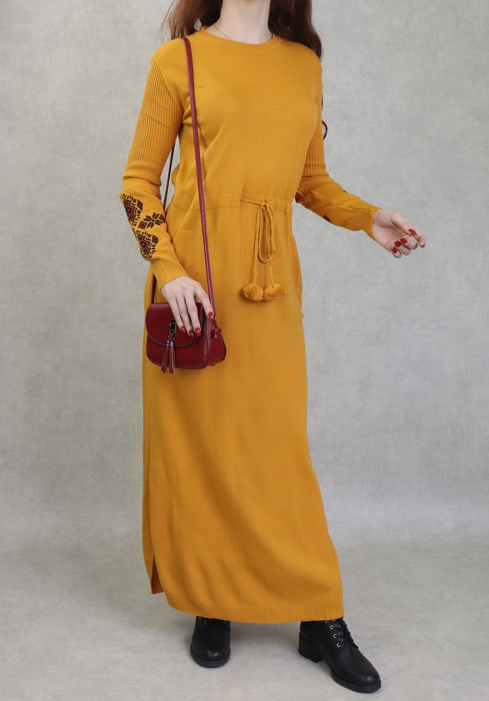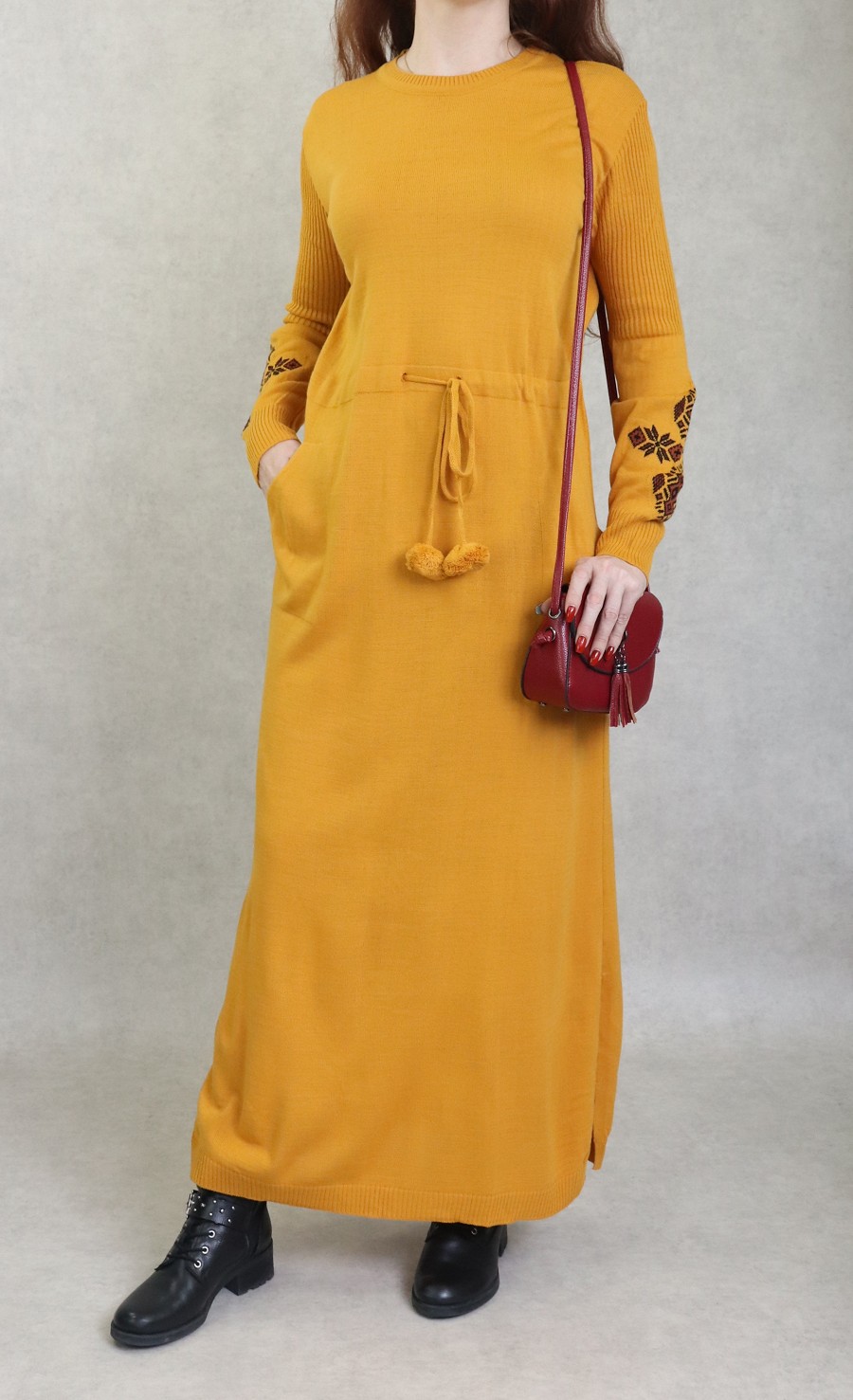 Robe longue en maille fine (Automne - Hiver) - Couleur Jaune moutarde