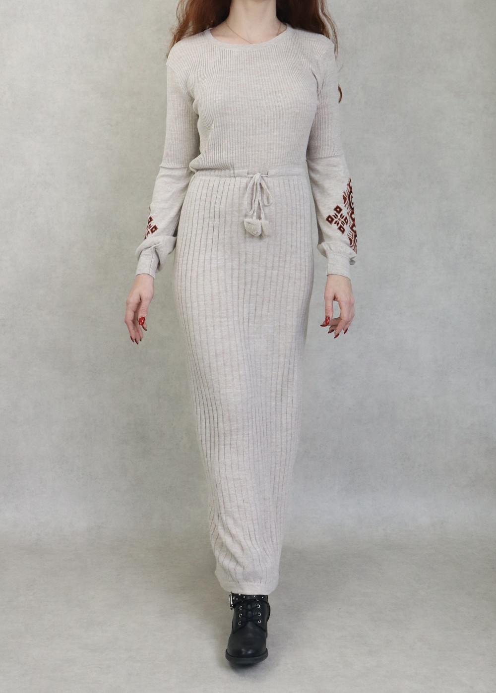 Robe originale, elle mettra en valeur votre côté chic et féminin. Encolure rond. Manches longues avec motif brodé sur l'avant bras. Découpe taille avec un lien de serrage. Facile à vivre, douce sur la peau et bien souple, la robe pull en côtes.