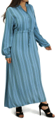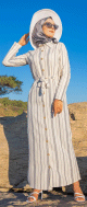 Robe chemise très longue à rayures (Hijab femme voilée chic) - Couleur Crème et gris - REF. 33924 (25.00 €)