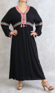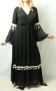 Robe noire longue et ample (large) avec broderies et petits pompons multi-couleurs (100 % coton) - REF. 31670 (29.90 €)