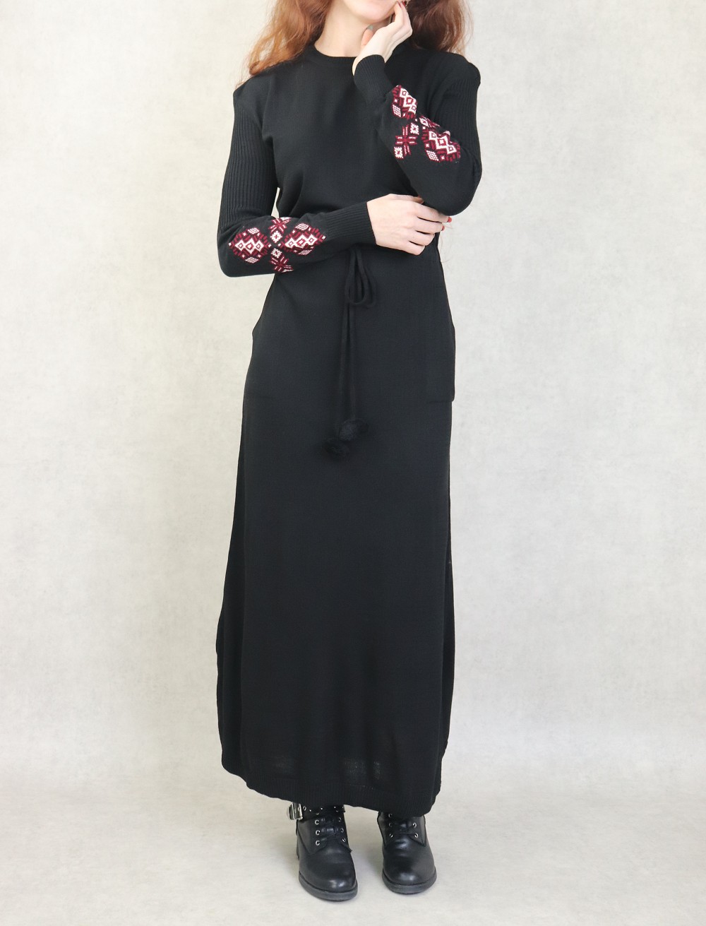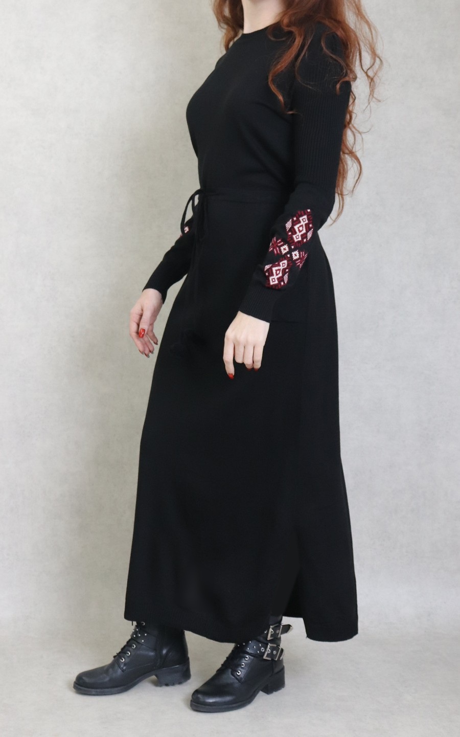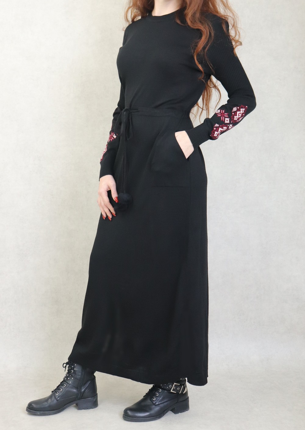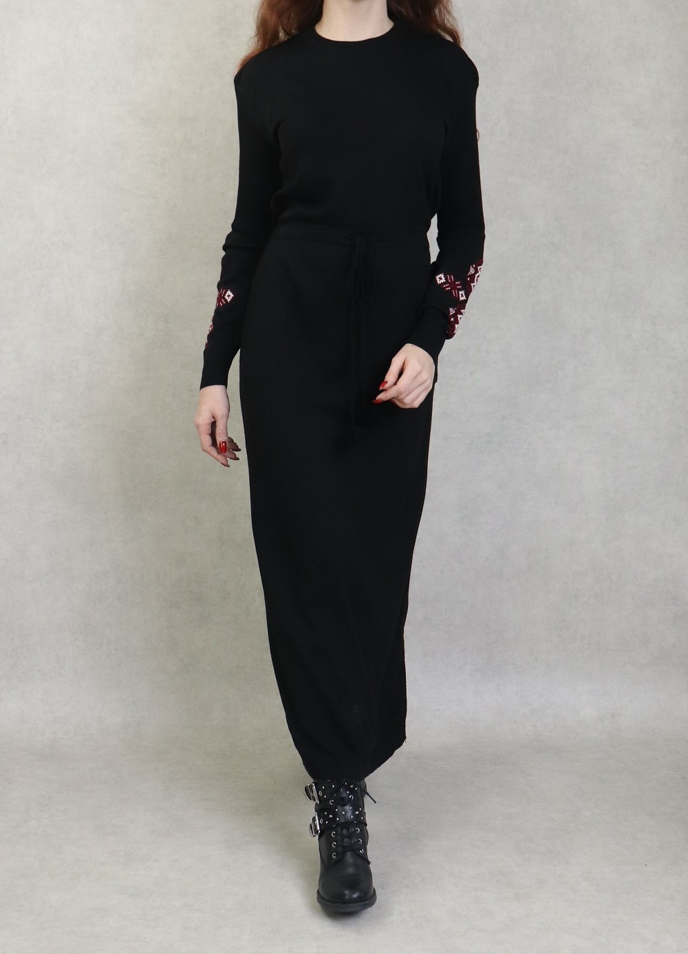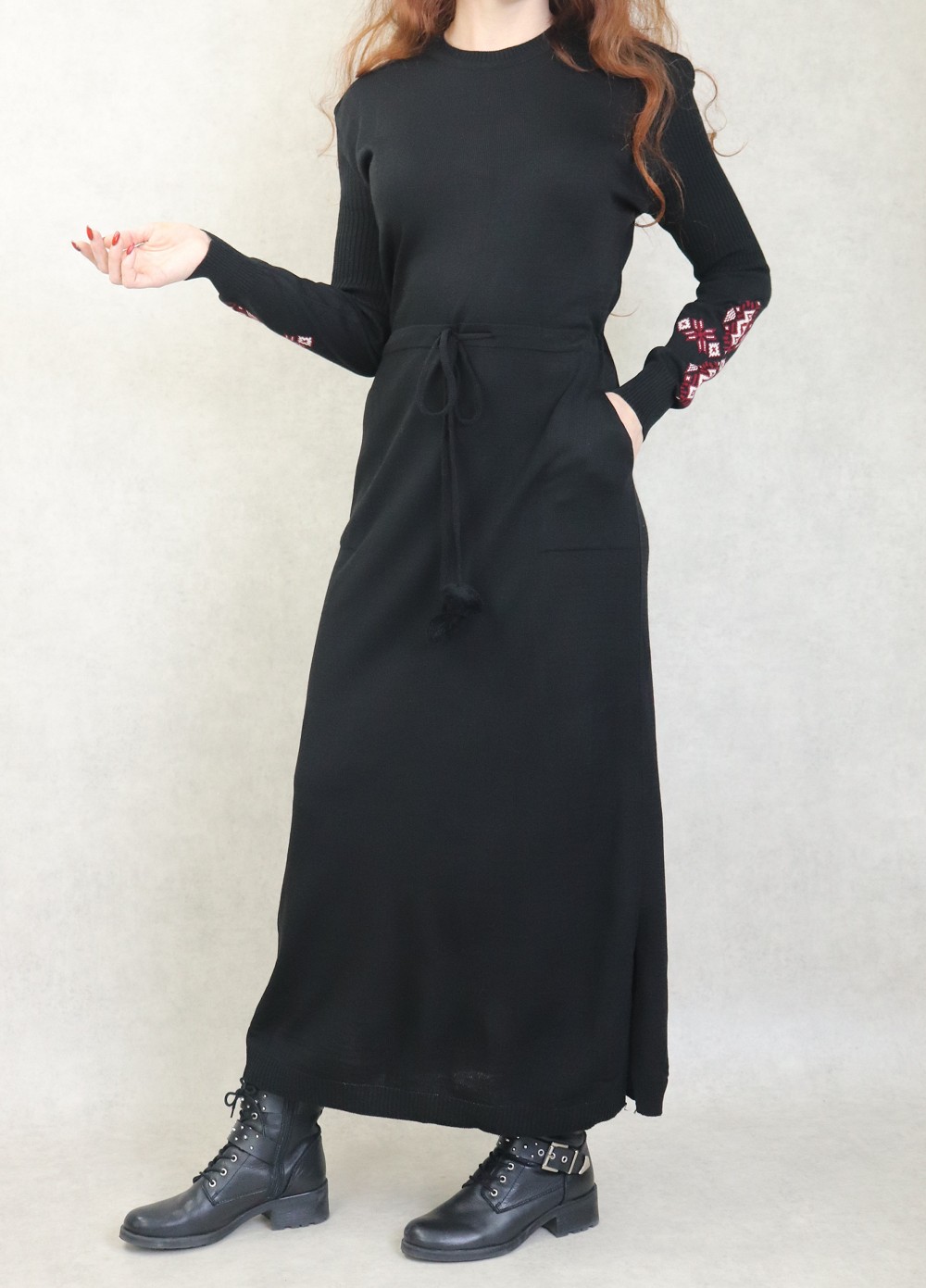 Robe longue en maille fine (Automne - Hiver) - Couleur Noir