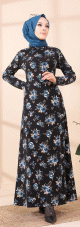 Robe longue à fleurs (Robes pour hijab) - Couleur noir et bleu - REF. 35407 (19.90 €)