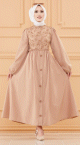 Robe en coton ample et évasée avec broderies discrètes pour femme (Vêtement style habillé pour hijab) - Couleur beige - REF. 36666 (39.90 €)