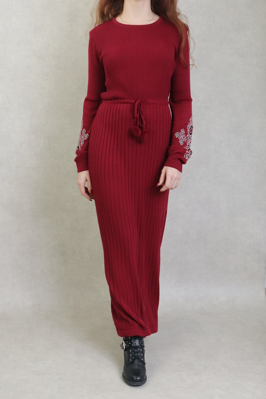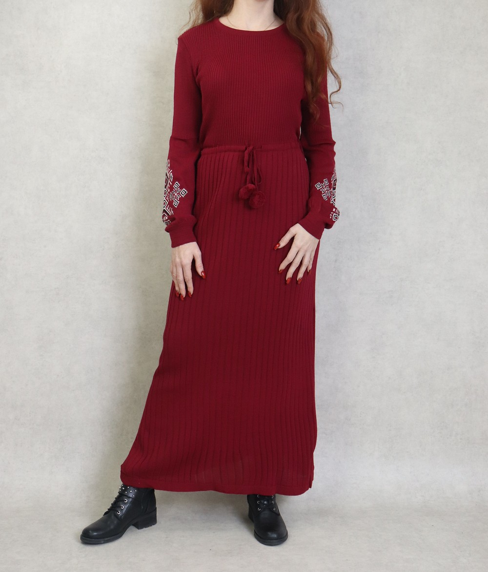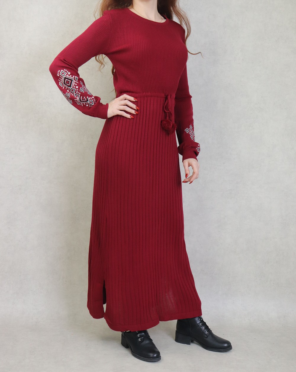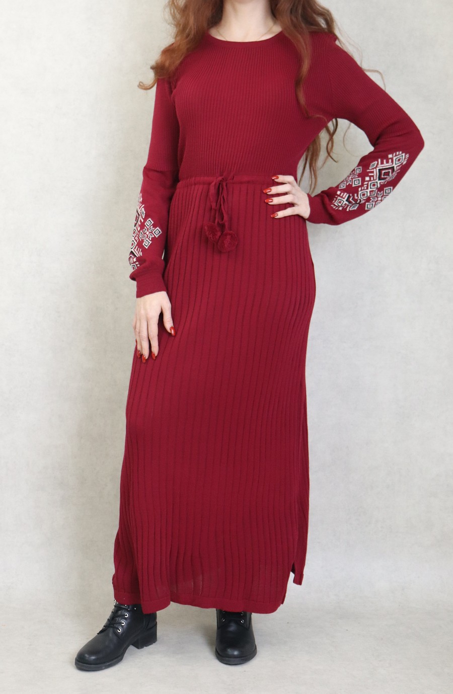 Robe longue en maille fine (Vetement Automne - Hiver) - Couleur Bordeaux