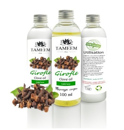 L’huile DE GIROFLE TAMEEM PARIS s'utilise en application cutanée. massage du corps. Ne contient ni conservateurs, ni produits chimiques.