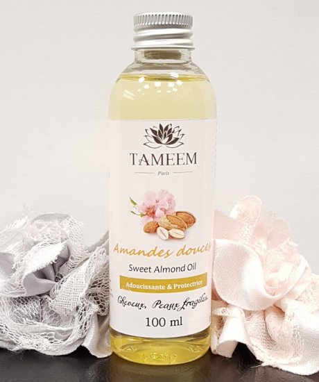 L'huile d'amande douces Riche en acide gras, elle hydrate généreusement la peau, l'assouplie, la tonifie et permettrait aussi d'éliminer les vergetures.