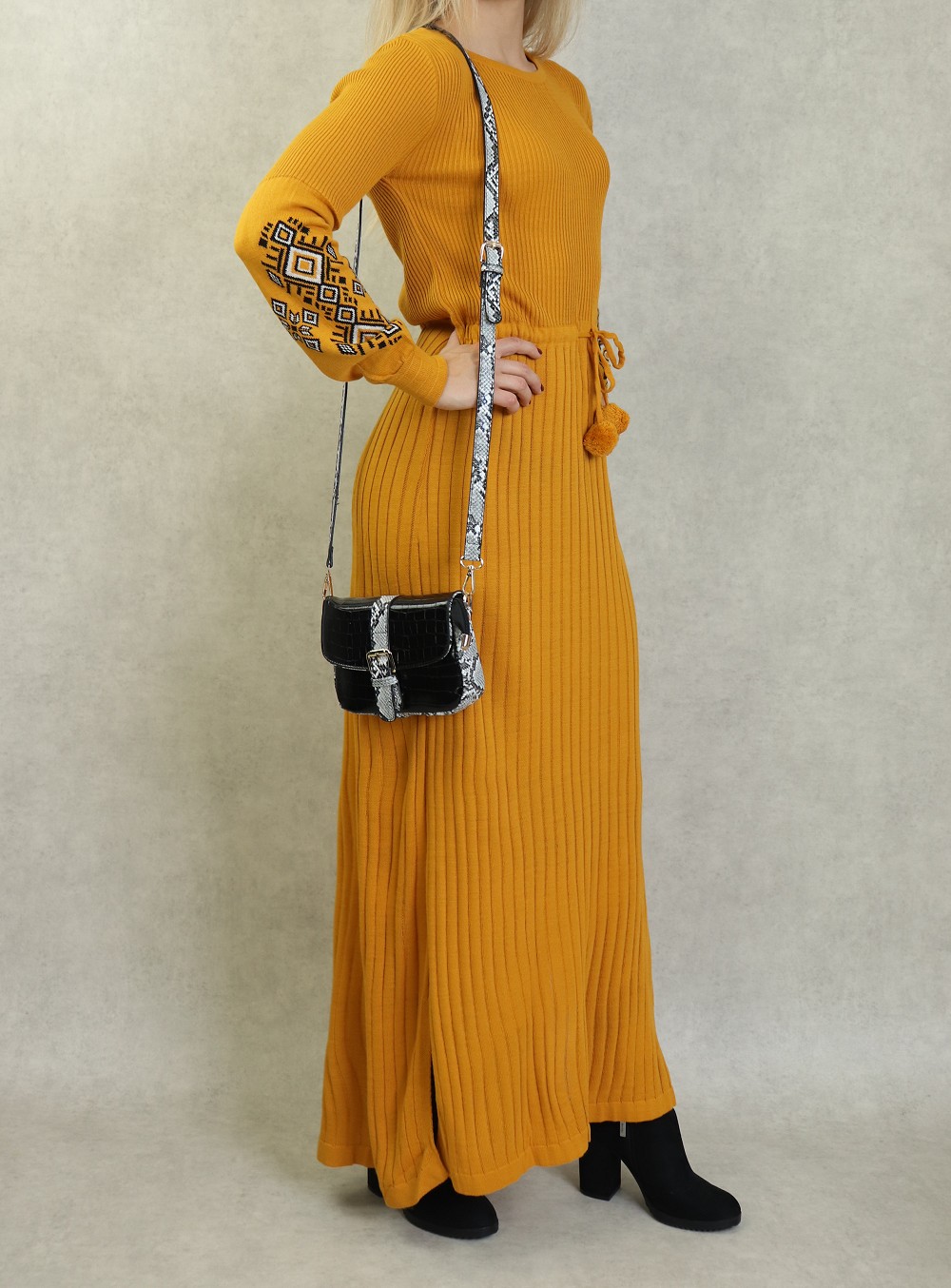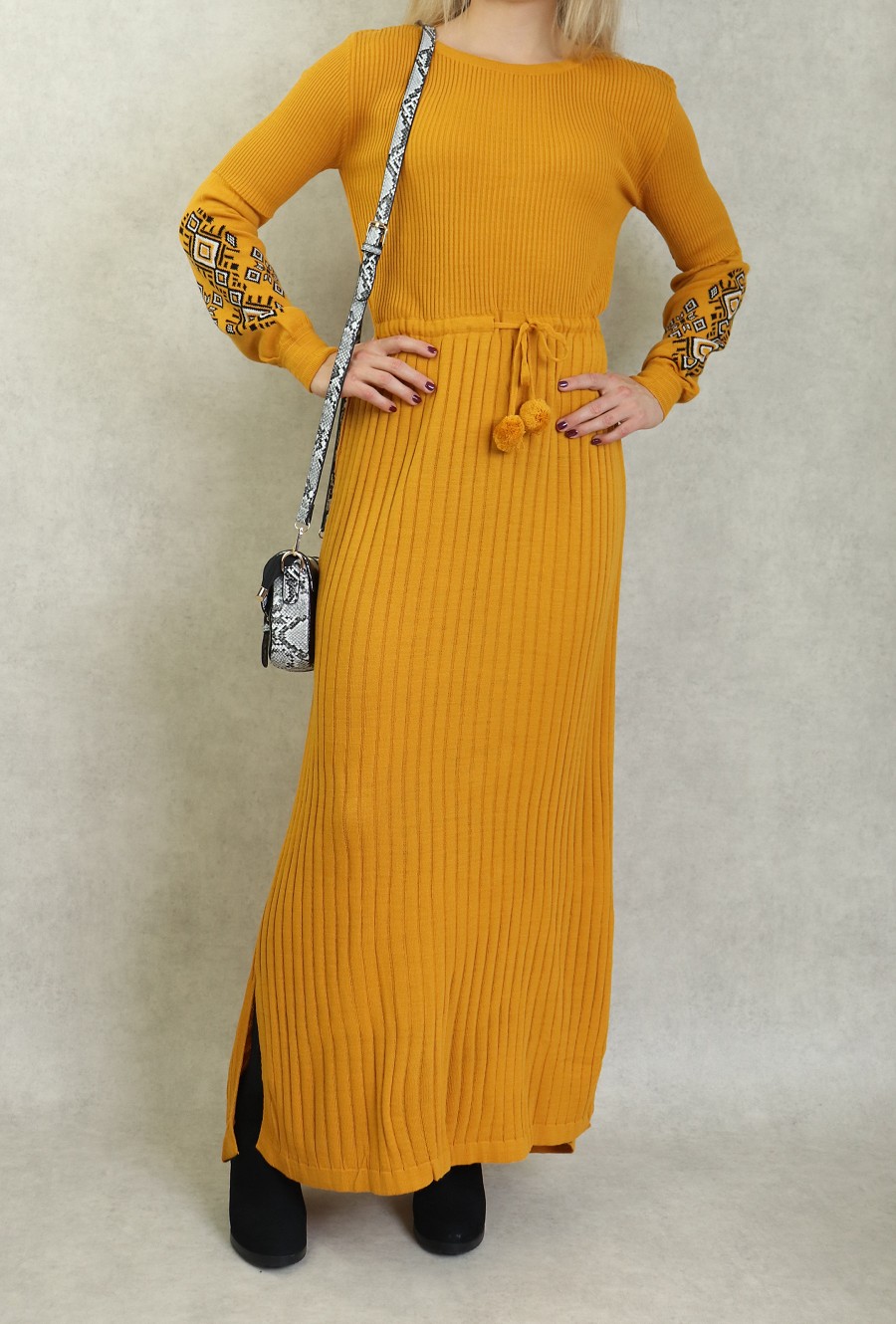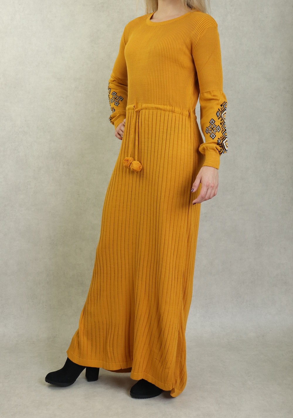 Robe longue en maille fine manche longue pour femme (Saison Automne - Hiver) - Couleur Jaune moutarde