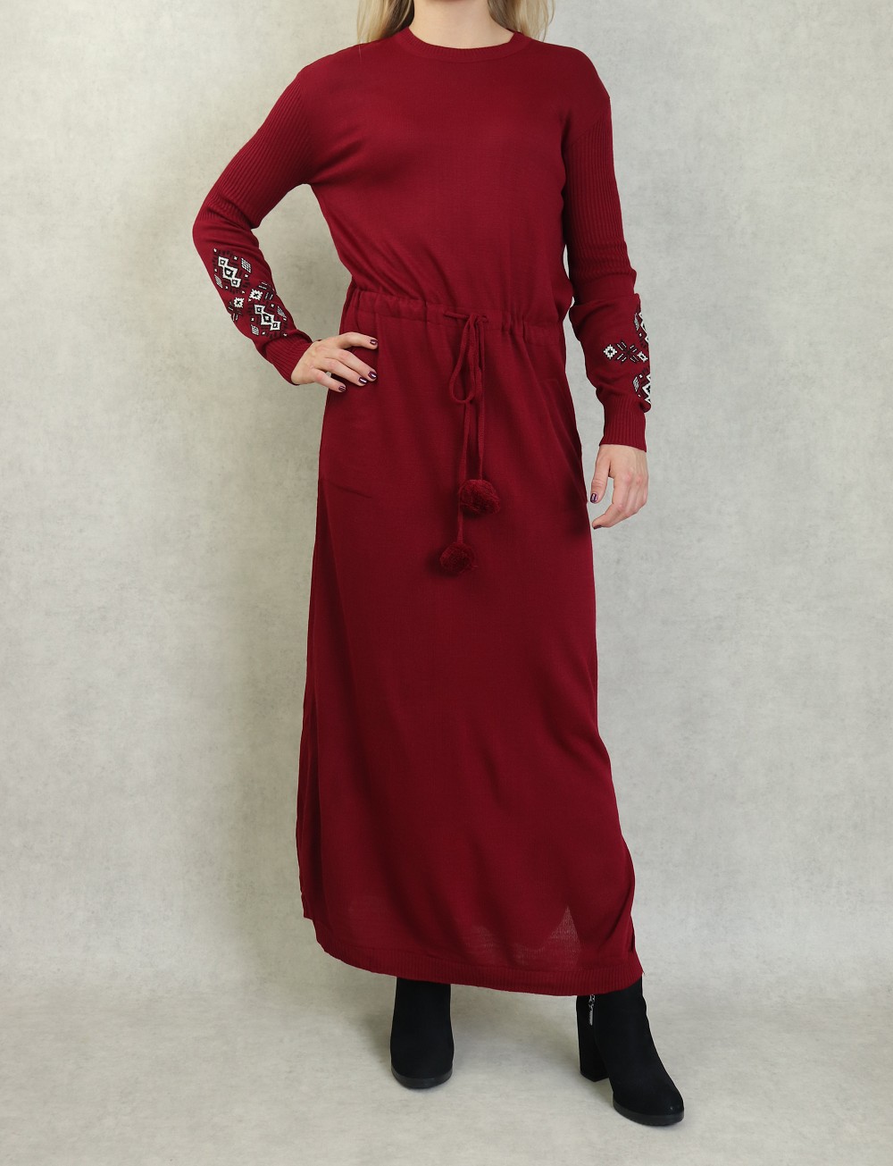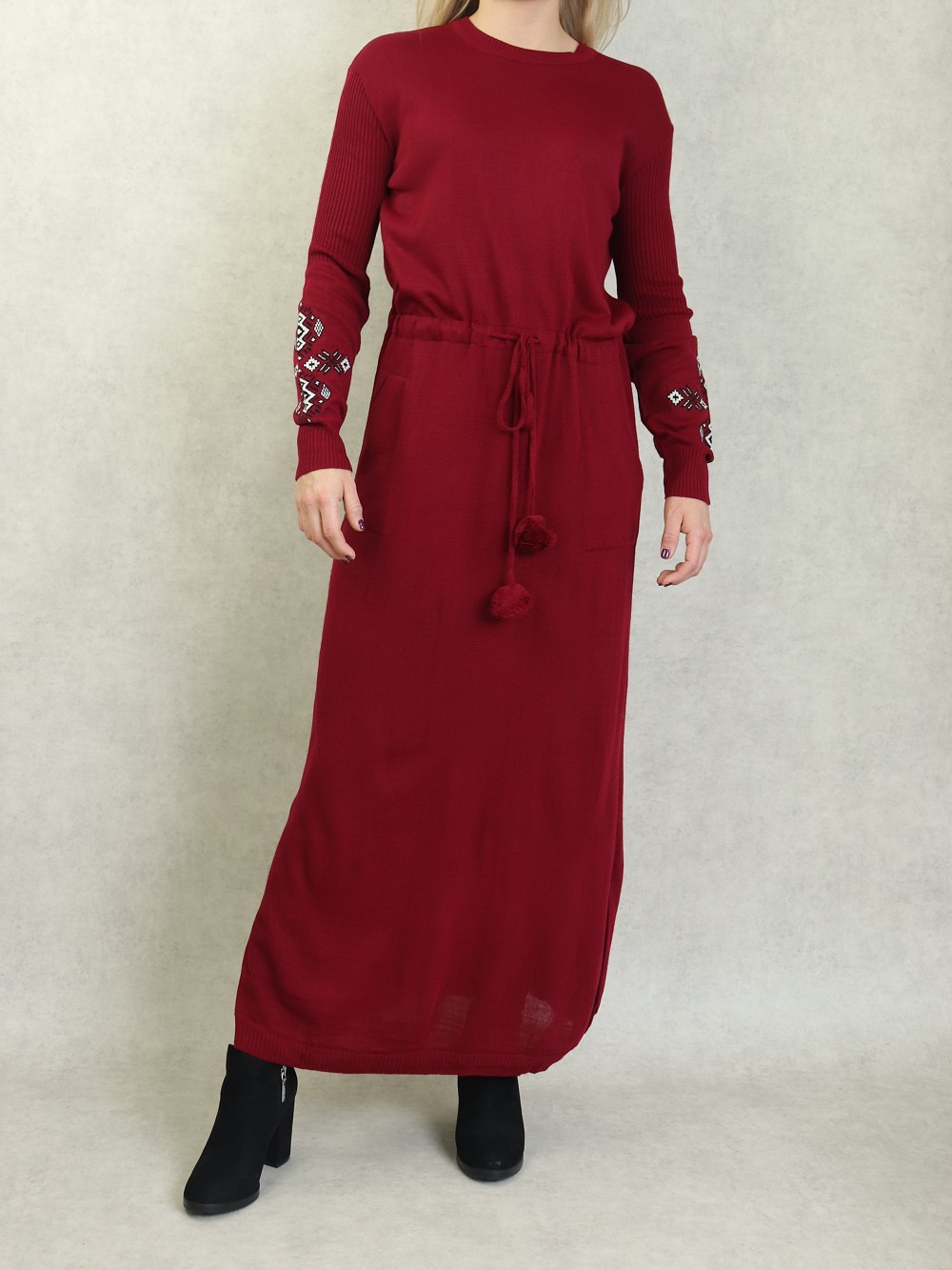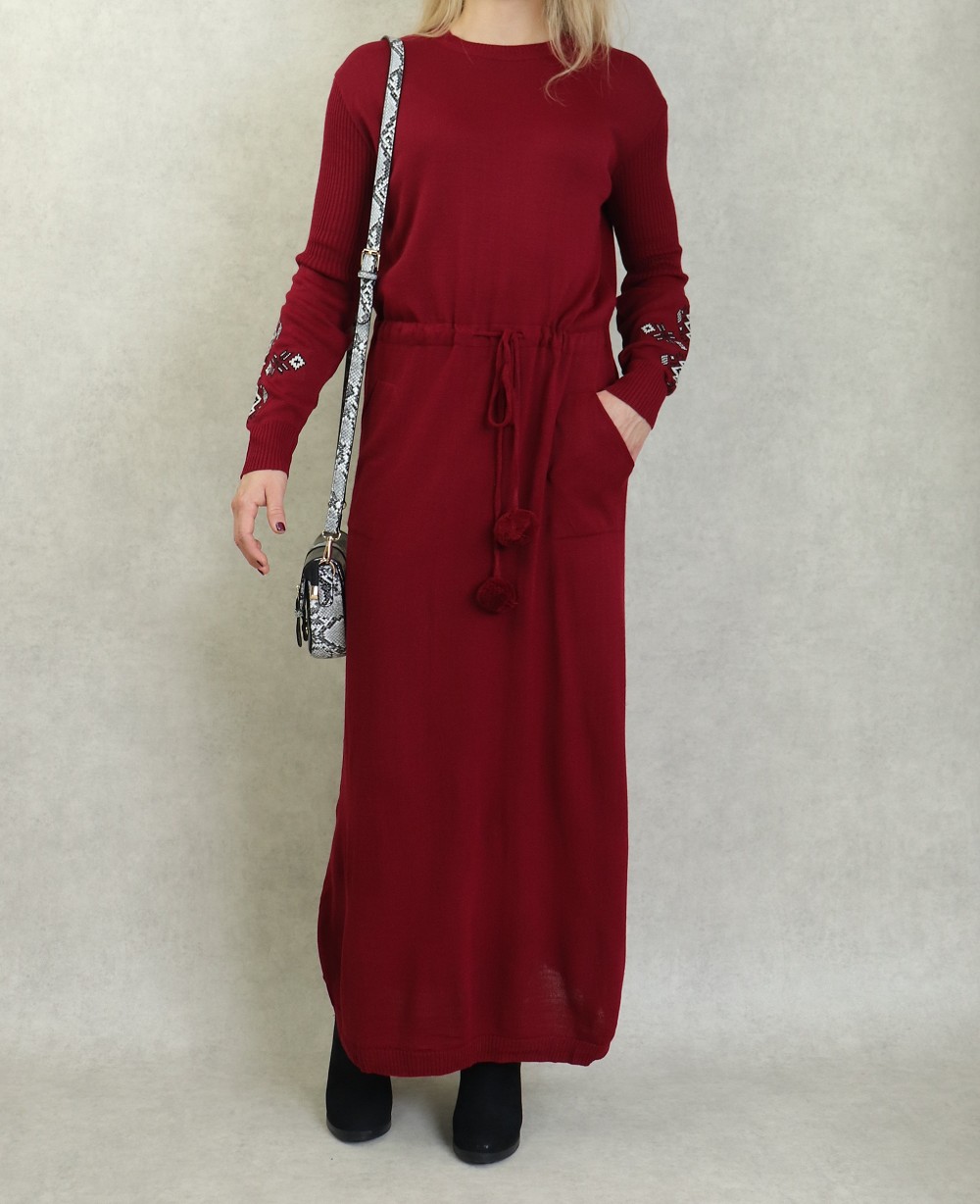 Robe longue en maille fine (Automne - Hiver) - Couleur Bordeaux