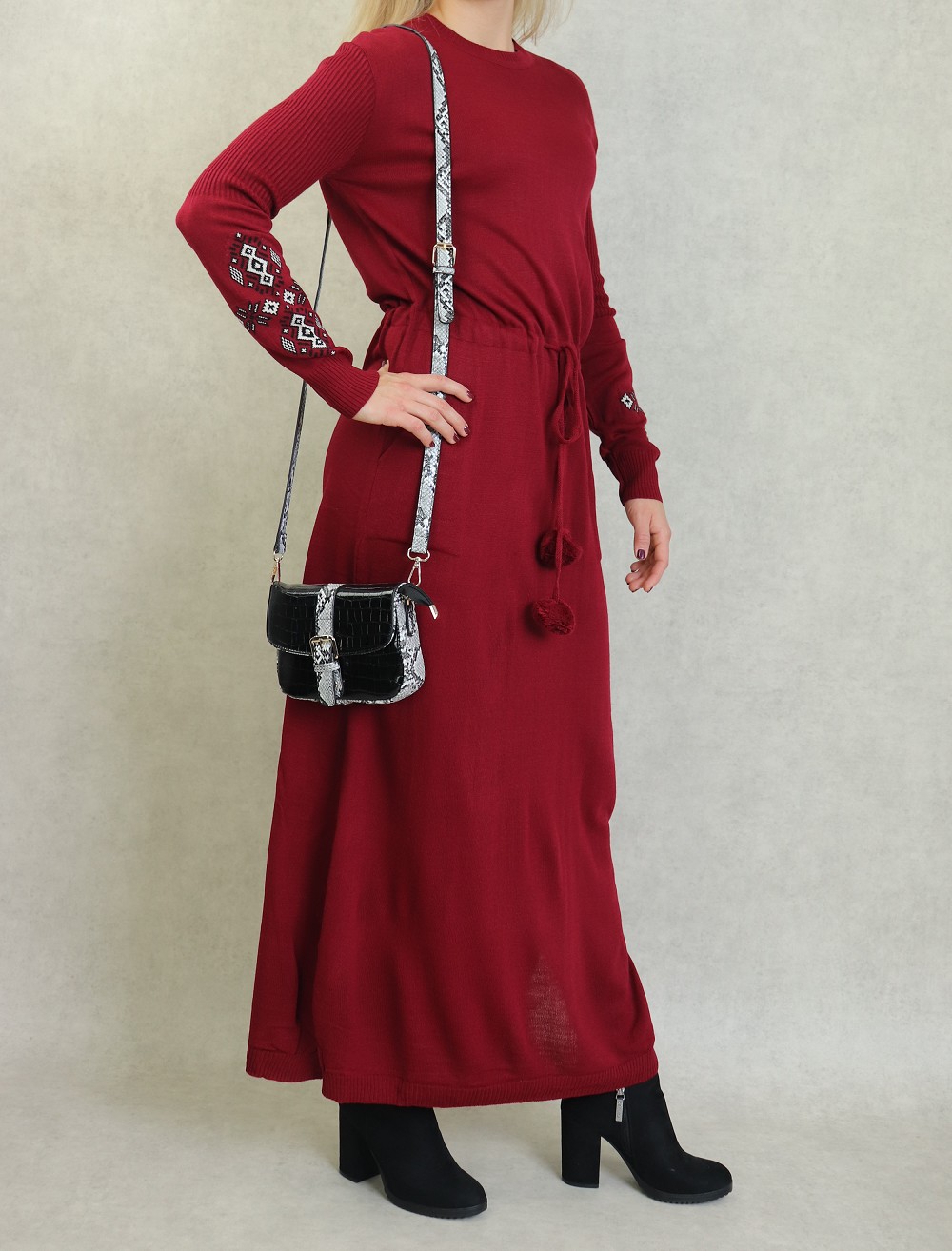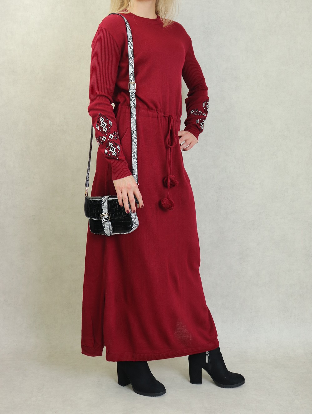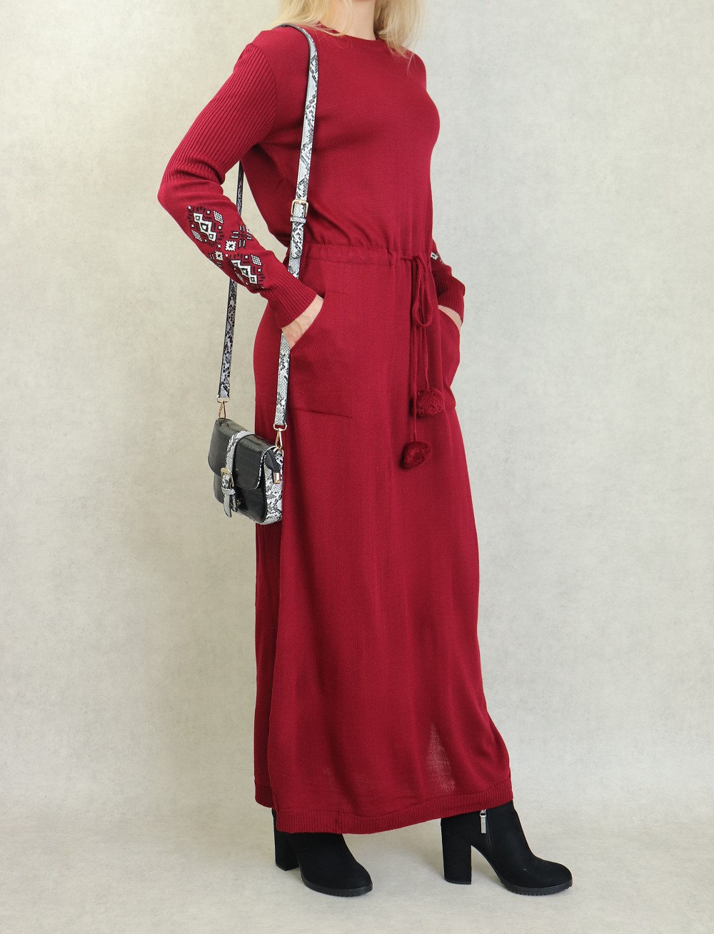 Robe longue en maille fine (Automne - Hiver) - Couleur Bordeaux