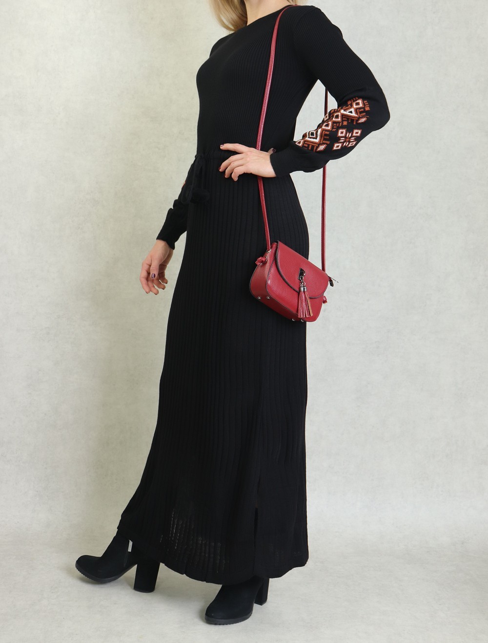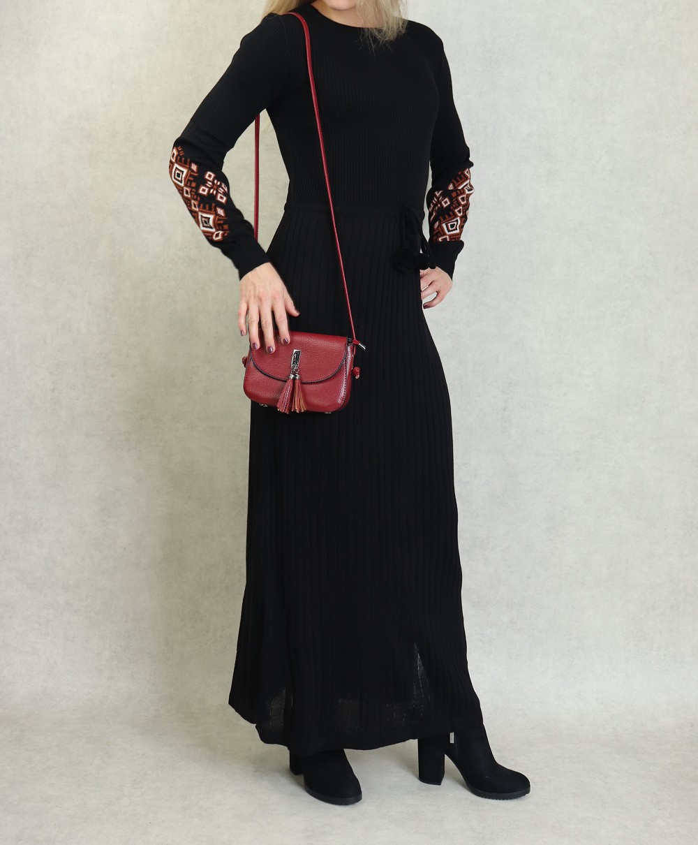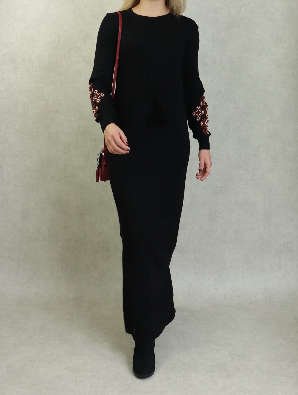 Robe longue en maille fine manche longue pour femme (Saison Automne - Hiver) - Couleur Noir