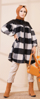Veste - Chemise longue oversize à grands carreaux (Look femme voilée hiver) - Couleur noir et blanc - REF. 35285 (26.90 €)