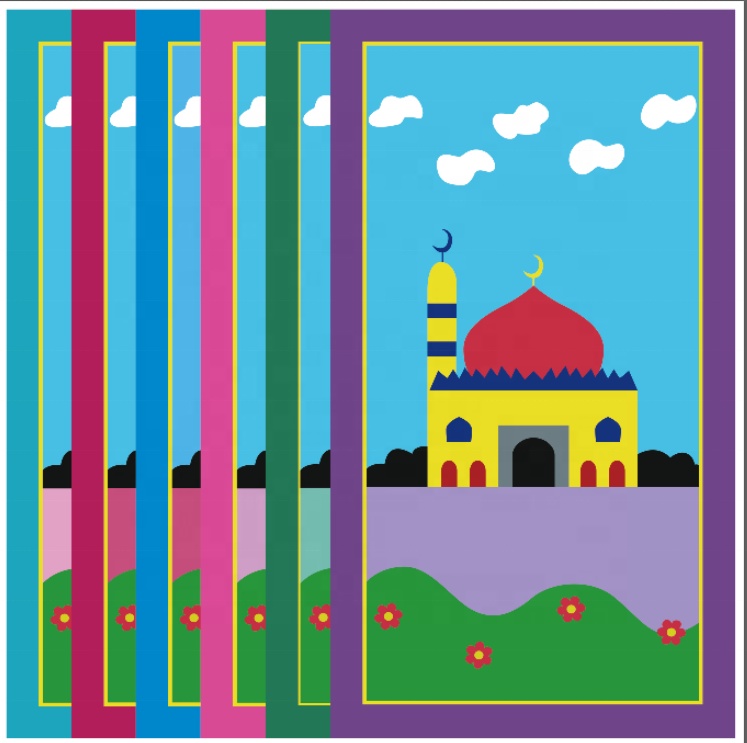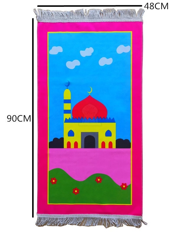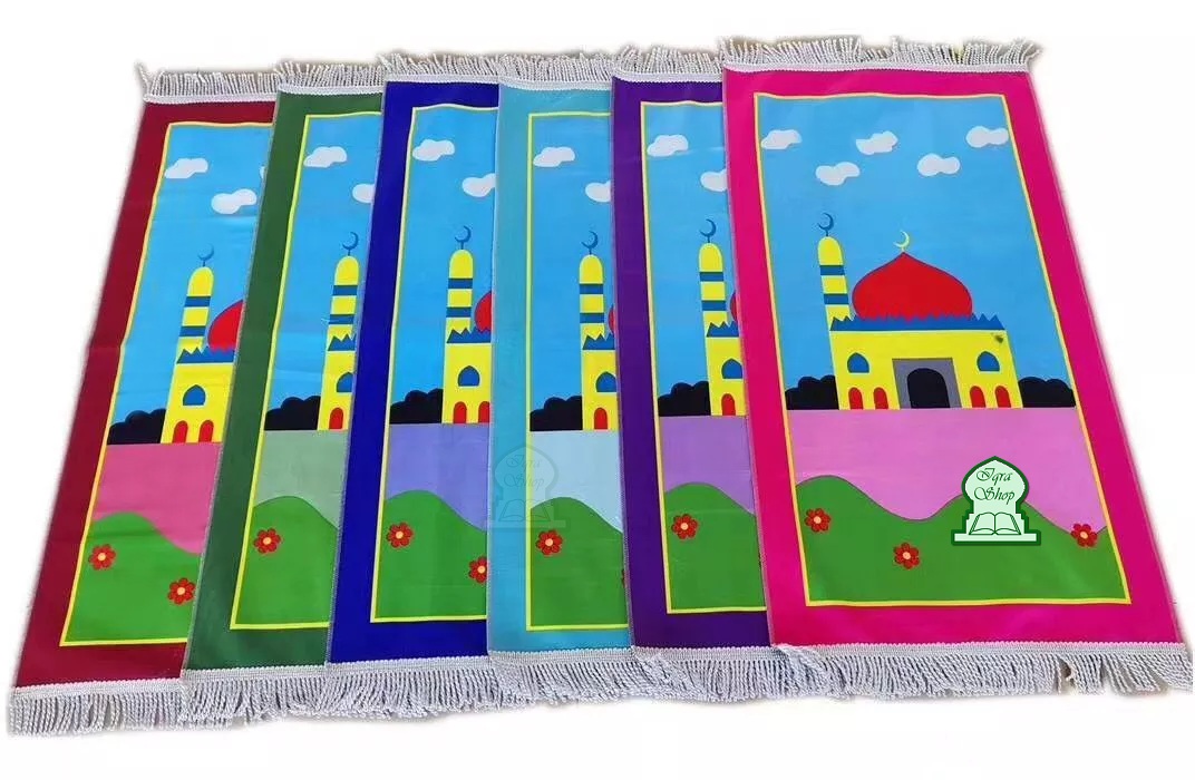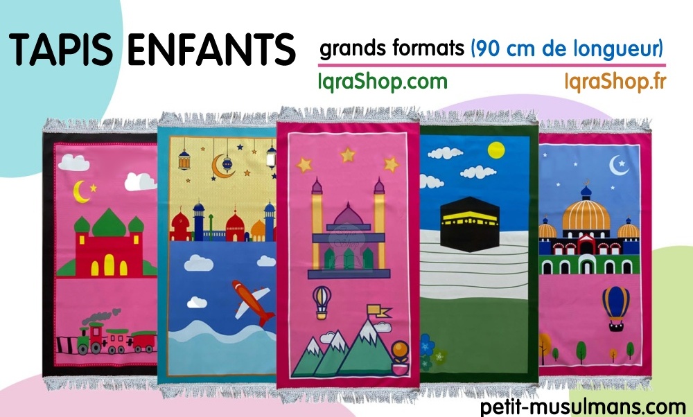 Tapis de prière (sajjadah) pour un enfant ou ado qui ne dépasse pas 1m60. Idéal pour les enfants à partir de 5 ans. Photo non contractuelle les contours peuvent être de couleurs différentes.