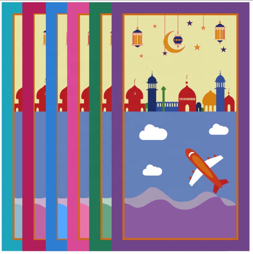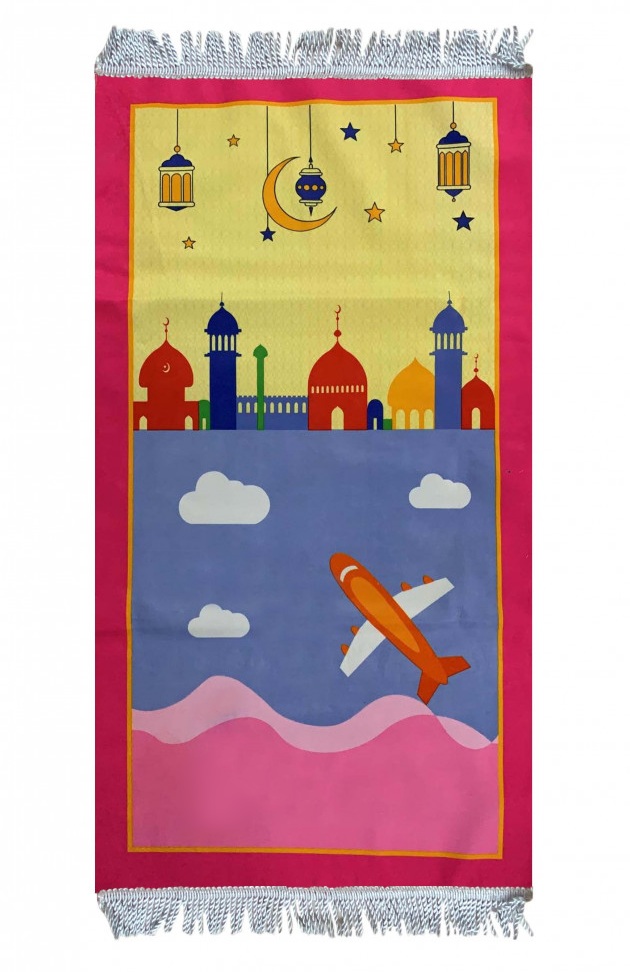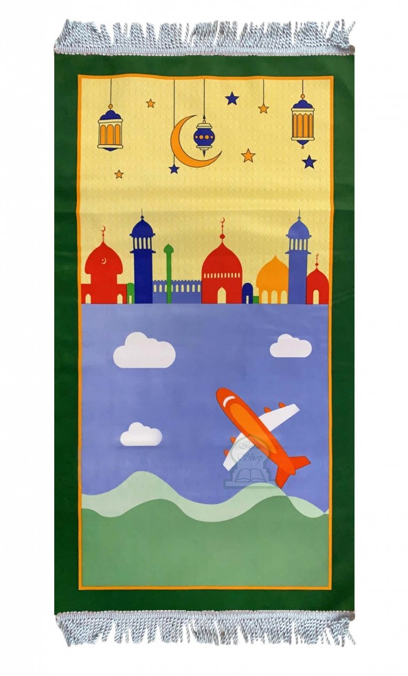 Tapis de prière (Sajjadat-Salat) pour enfants et ados musulmans avec dessin Mosquée et Avion (Plusieurs couleurs disponibles) - REF. 34170 (7.50 €) - En Promotion à 5.90 €
