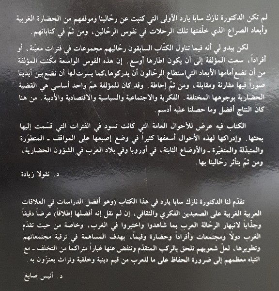 إن من أهم الوسائل التي عرفت العرب بمظاهر الحضارة الأوروبية في القرن التاسع عشر هي رحلاتهم إلى الغرب، وقد وصف بعض الرحالين مشاهداتهم في الغرب، ودوّنوا انطباعاتهم، فقرأها بعض مواطنيهم الذين لم يتمكنوا من زيارة أوروبا بأنفسهم. وعليه فقد لعب أدب الرحلة دوراً في تعريف بعض العرب بالحضارة الأوروبية، ومن نشر ما يخيم عن الاحتكاك بالغرب من أفكار ومبادئ، ونظم جديدة عملت على التأثير في المجتمع العربي تدريجياً، يأتي الكتاب في هذا الإطار حيث اختارت الباحثة للدراسة موضوع أدب الرحلة في القرنين التاسع عشر والعشرين وذلك لأنه من أهم الفنون التي صورت احتكاك العربي بالغرب، وما نجم عن هذا الاحتكاك من مؤثرات صدمت الذهنية العربية والمجتمع العربي، وأدت إلى صراع سياسي واقتصادي وفكري وحضاري لا يزال من الأسباب التي تقلق الهوية العربية حتى اليوم