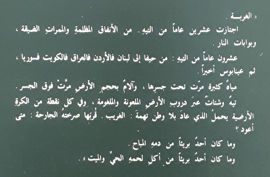 "بعد عملية ضرب مقر الحاكم العسكري في نابلس، والتي نفذت بقرار فردي وثائر، انطوت صفحة مهتزة من حياة نافذ علام، الحكيم العربي الذي يداوي الناس بالأعشاب والذي يخطط وينظم سراً ثم يقوم بالتنفيذ استجابة لرغباته ولتوجهات أقواس الغضب والدم التي تحتاج أعماقه، صار اسمه الحركي "الجبل". وبعد أن كشف العدو حركاته وعلاقته بالعمل الفدائي المسلح وبث العيون لرصده حياً أو ميتاً. سكن الجبال والكهوف زمناً وقام بعدة عمليات خاصة، وما كان ينزل عيناً بوس إلا ليلاً بعد التأكد من خلوها من الخطر. لقد سمته إسرائيل: ذئب جبال نابلس الكاسر. وقال عنه الحاكم العسككري الذي نجا من قنبلته: لم يخدعني رجل في حياتي كما خدعتني هذه الأفعى. خلال شهر استطاع أن يعيد تنظيم مجموعته وزيادتها إلى ستة عناصر جديدة، مركز تدريبها في منطقة جماعين. وخلال هذه الفترة أقام علاقات مع مجموعة أخرى تشكلت في الداخل من الفدائيين الضفة أو من الذين هربوا عبر الأغوار من الأردن بعد الـ67" بأسلوب ميلو درامي واضح، يروي "حيدر حيدر" في كتابه "التموجات" قصتان مأخوذتان من واقع مجتمعه المناضل متوقفاً عند محطات محددة من حياة بطلاه المناضلين اللذين استطاع من خلالهما تخطي حدوداً وحروباً لم يستطيع غيره تخطيها لو عبر الأوراق فيها يروي تفاصيل اعتقالات حدثت، حروب خيالية تم النصر فيها وفي غمرة هذيانه، يتحدث عن الحشاشين واللوطيين الذين حاولوا الإيقاع ببطلاه في أزمة الأحياء الشعبية.
