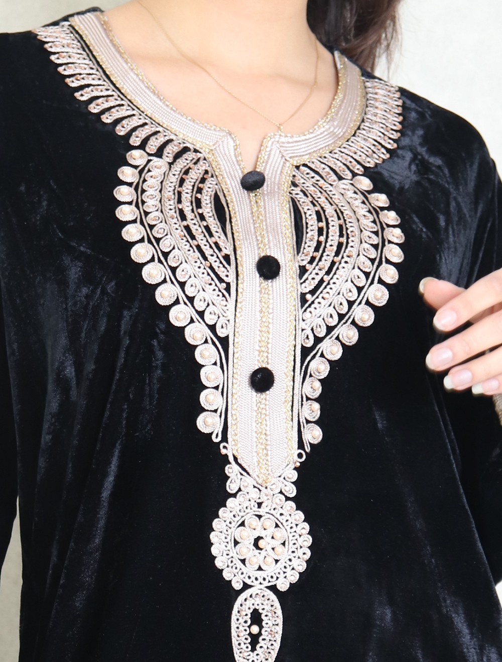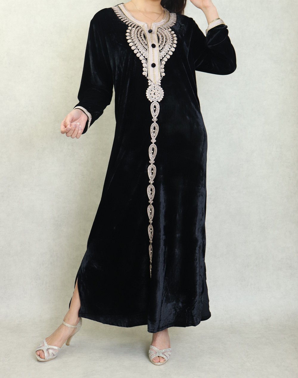 Robe longue orientale algérienne en velours brodée et perlée pour femme - Couleur Noir - REF. 34318 (29.90 €)