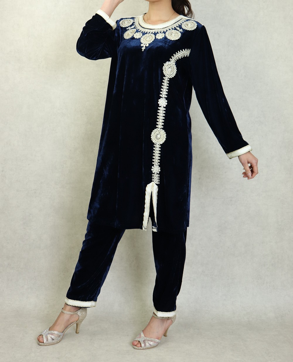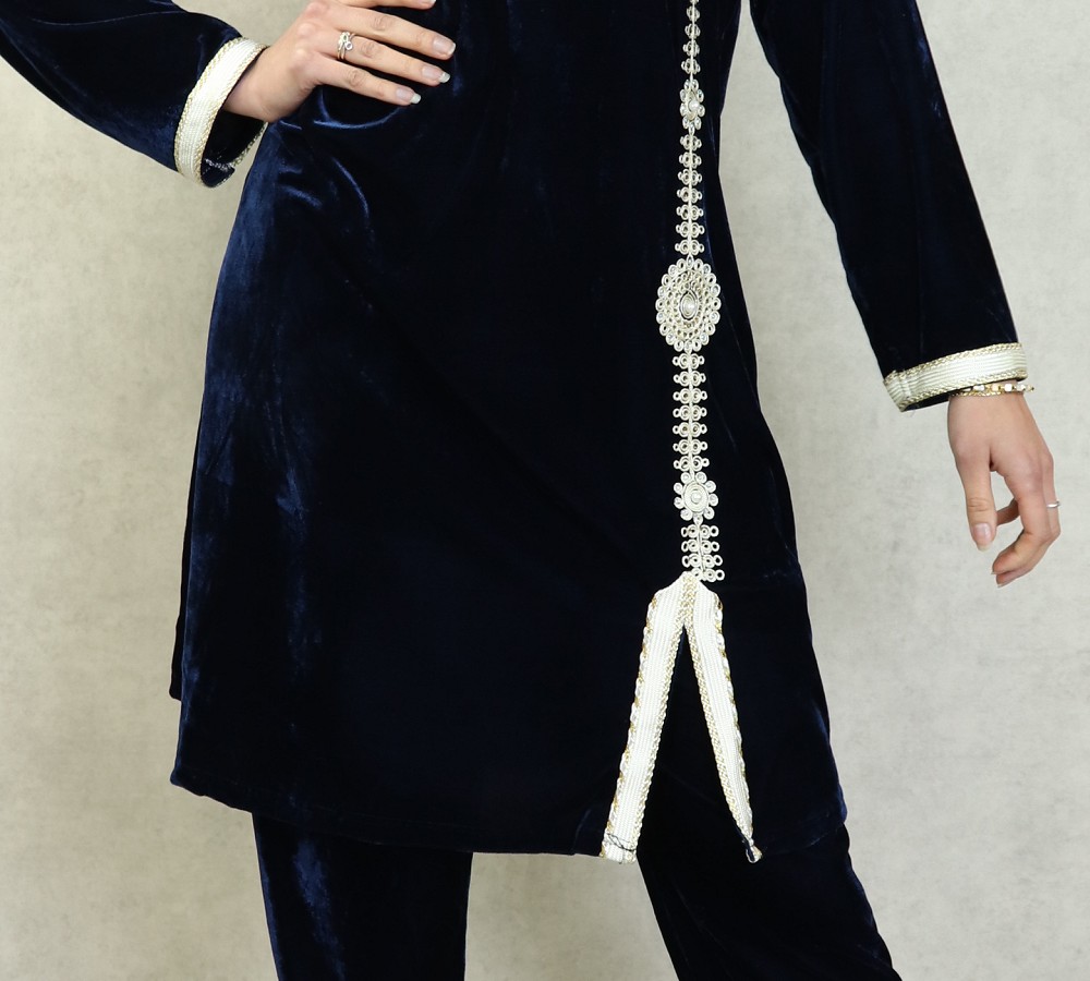 Ensemble style Jabador velours avec broderies pour femme - Deux pièces tunique pantalon - Couleur Bleu marine Vetement & Accessoire
