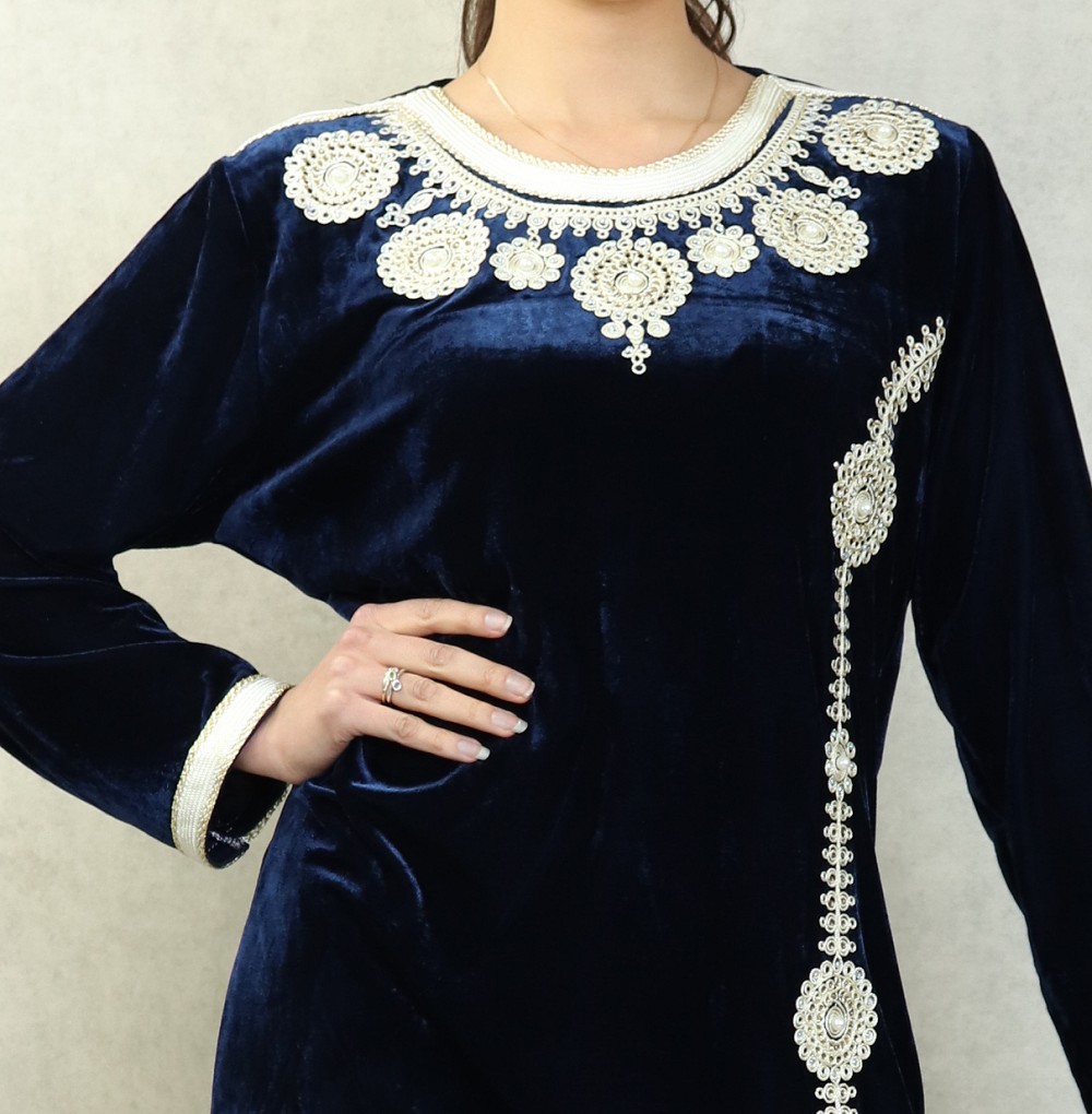 Robe arabe longue en velours avec broderie pour femme - Couleur Bleu marine - REF. 34314 (25.00 €)