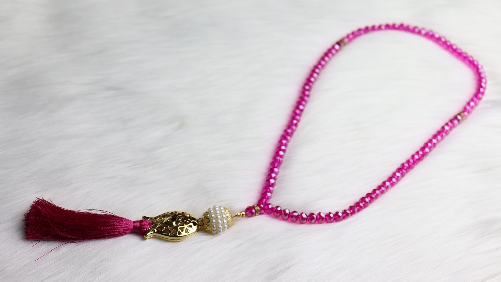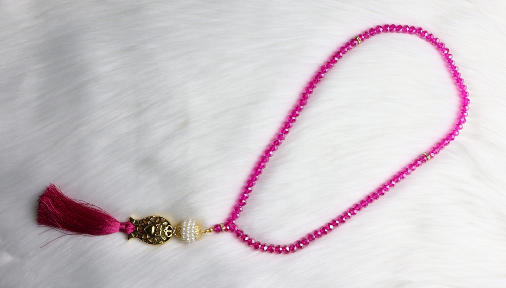 Chapelet "Sebha" de luxe a 99 perles en cristal decoration metallique et perles - Couleur rose