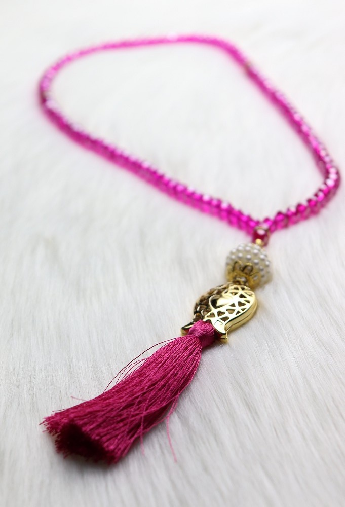 Chapelet "Sebha" de luxe à 99 perles en cristal décoration métallique et perles - Couleur rose Deco & Cadeau