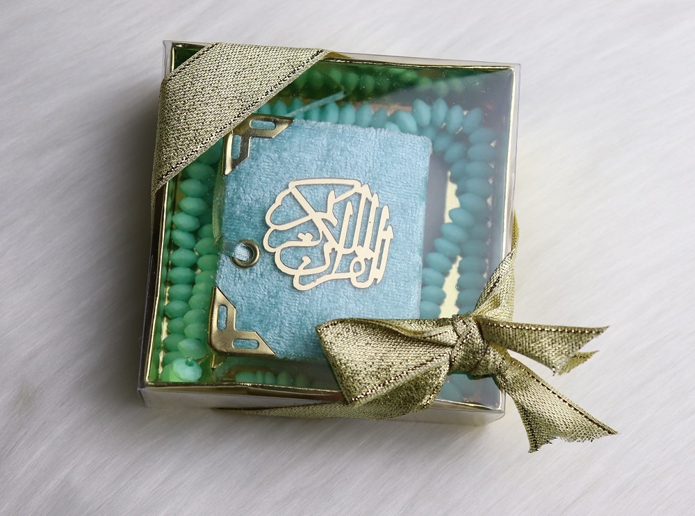 Coffret Cadeau : Mini Coran + chapelet "Sabha" - Couleur bleu turquoise