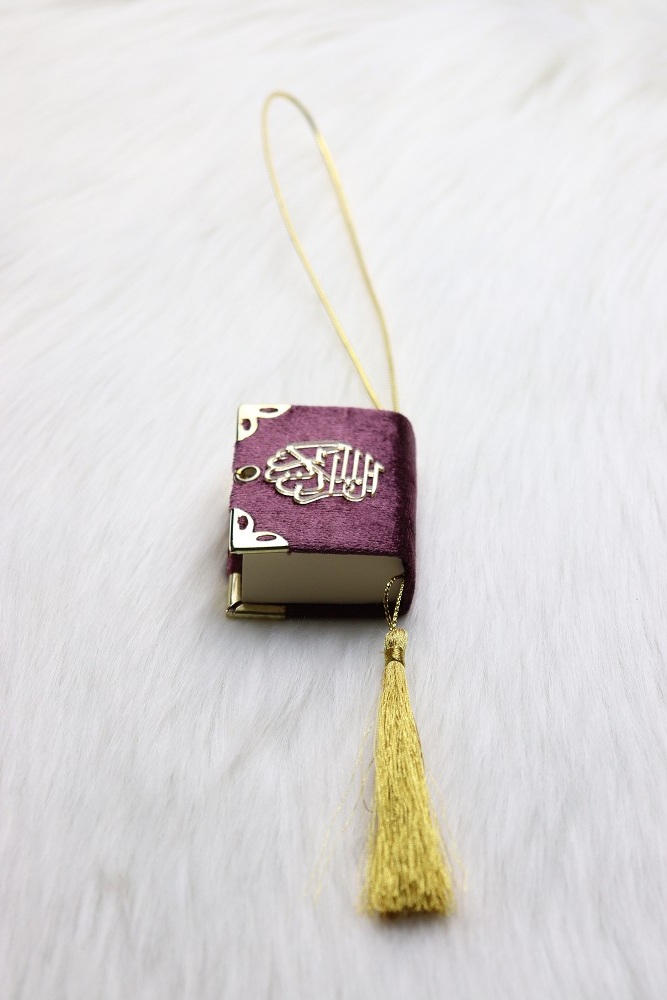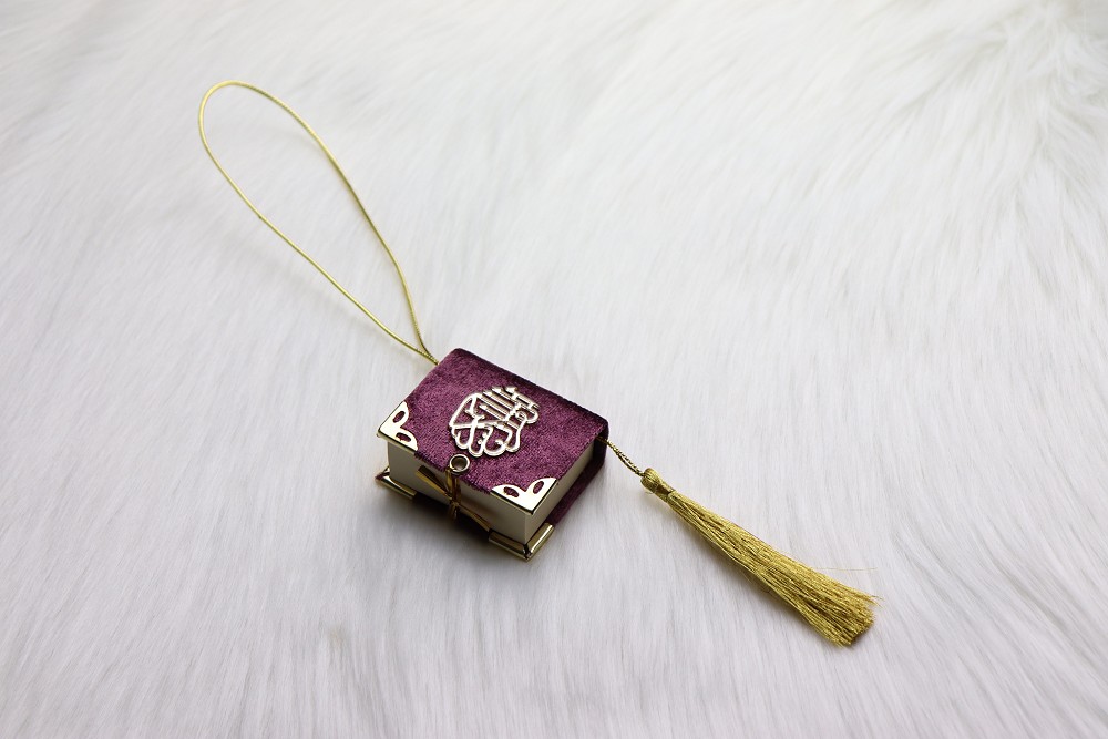 Pendentif Mini-Coran recouvert de velours avec parties dorées (Décoration islamique) - Couleur violet Deco & Cadeau