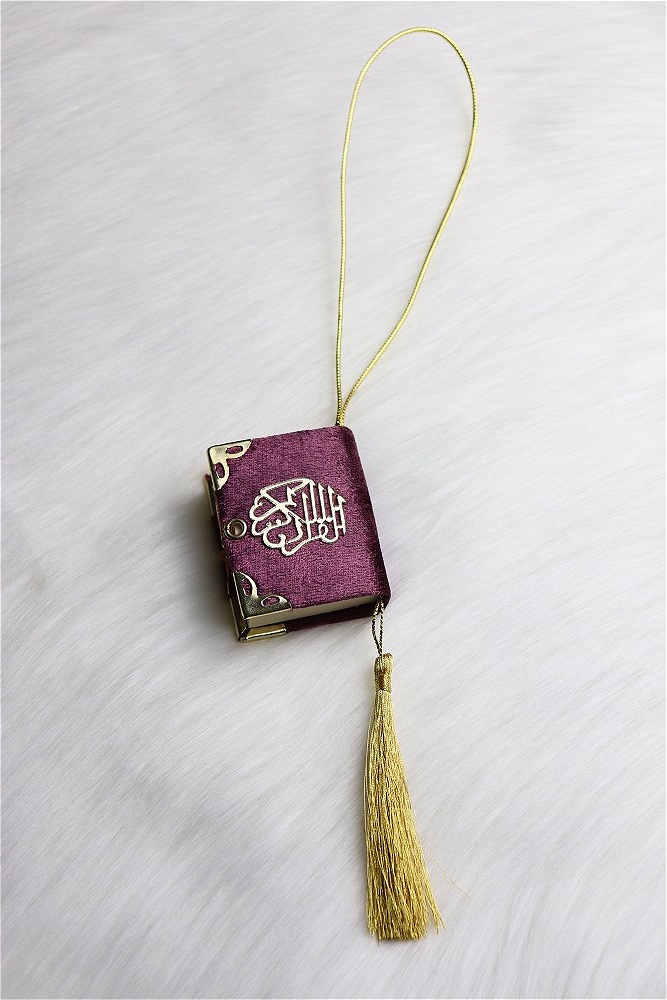 Pendentif Mini-Coran recouvert de velours avec parties dorées (Décoration islamique) - Couleur violet - REF. 34497 (4.90 €)
