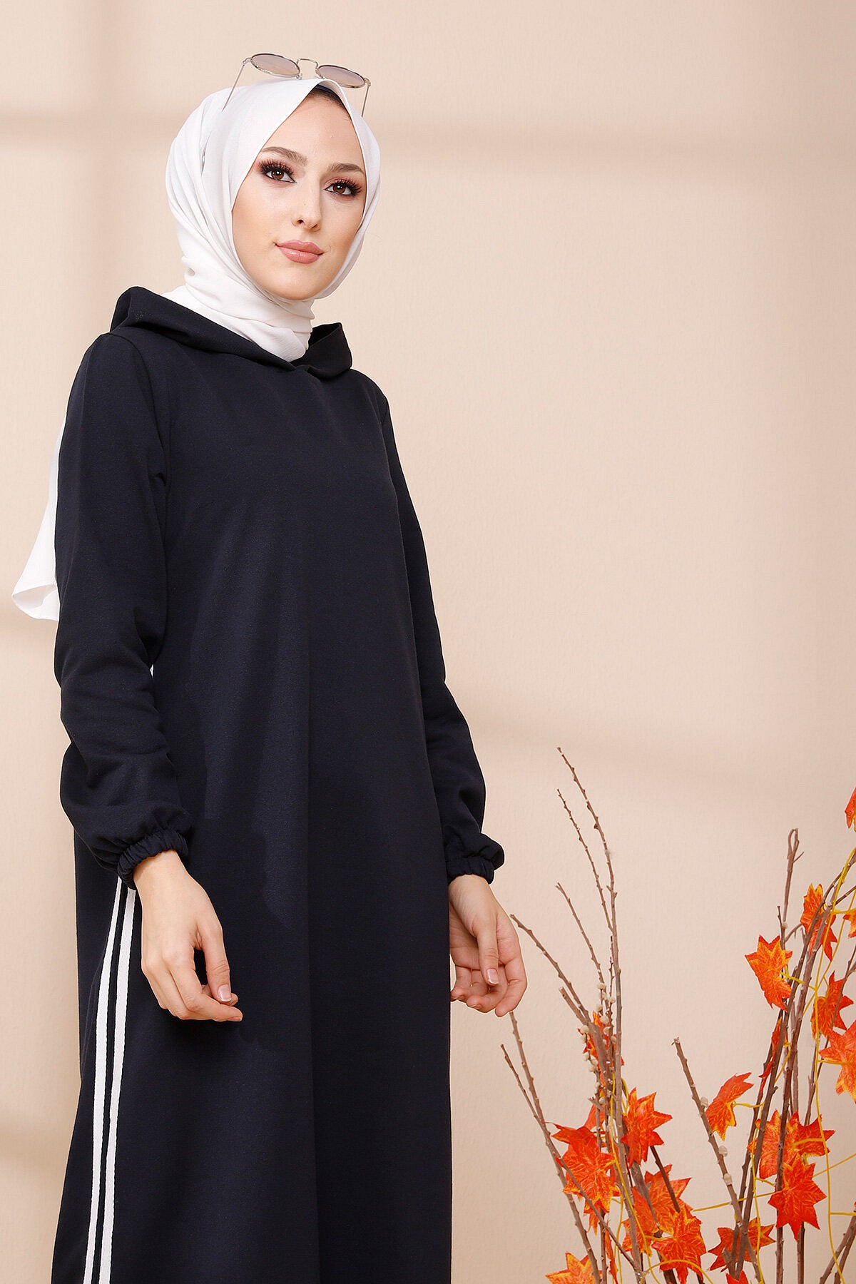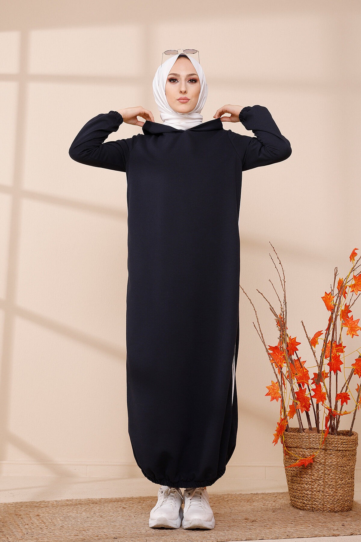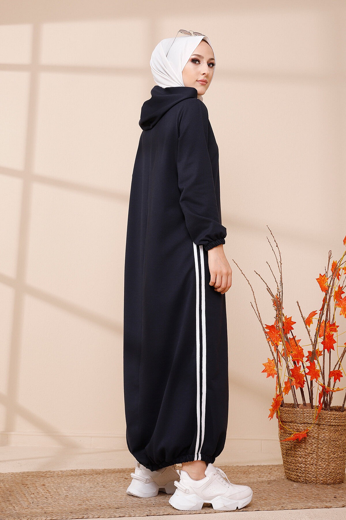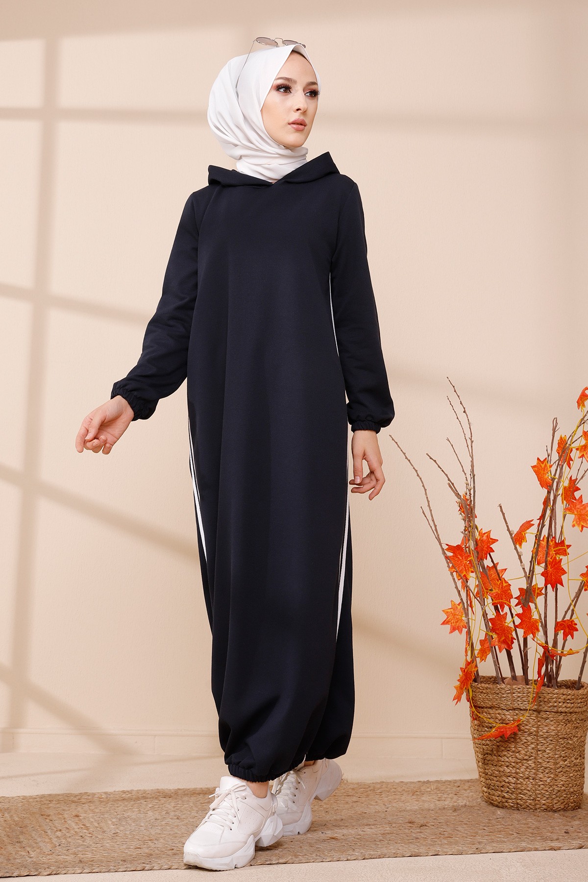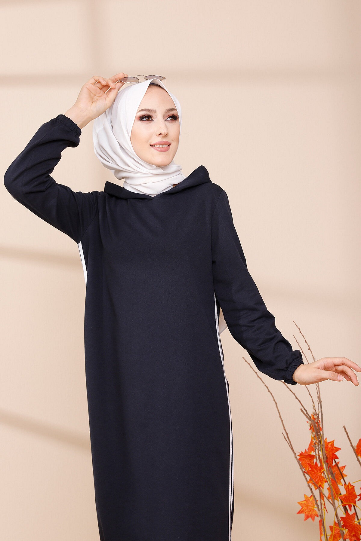 Robe décontractée à capuche style sportswear - Tenue Hijab moderne pour femme musulmane - Couleur noir blanc et nude - REF. 32925 (29.90 €)