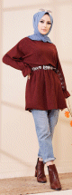Tunique longue décorée de strass broderie et pompons - Couleur Rouge Bordeaux - REF. 31904 (16.90 €)